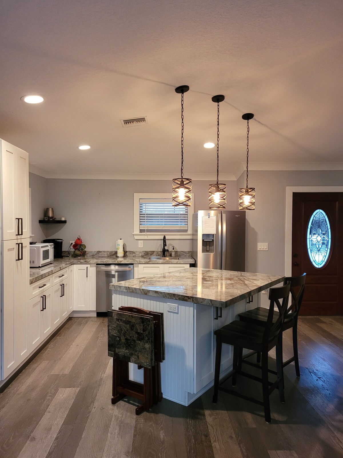 This charming rustic home has a lot to offer. It has many nooks where your family can unite and create moments for their memory buckets. Florida room allows you to observe nature and is a perfect spot for your coffee. The house has one master bedroom (king size bed) with attached full bathroom. It has a second bedroom with two built-in beds (twin and full size). There is a separate shower room and a separate restroom. Upstairs it has a 3rd bedroom with 2 built in twin beds and a 1/2 bathroom.