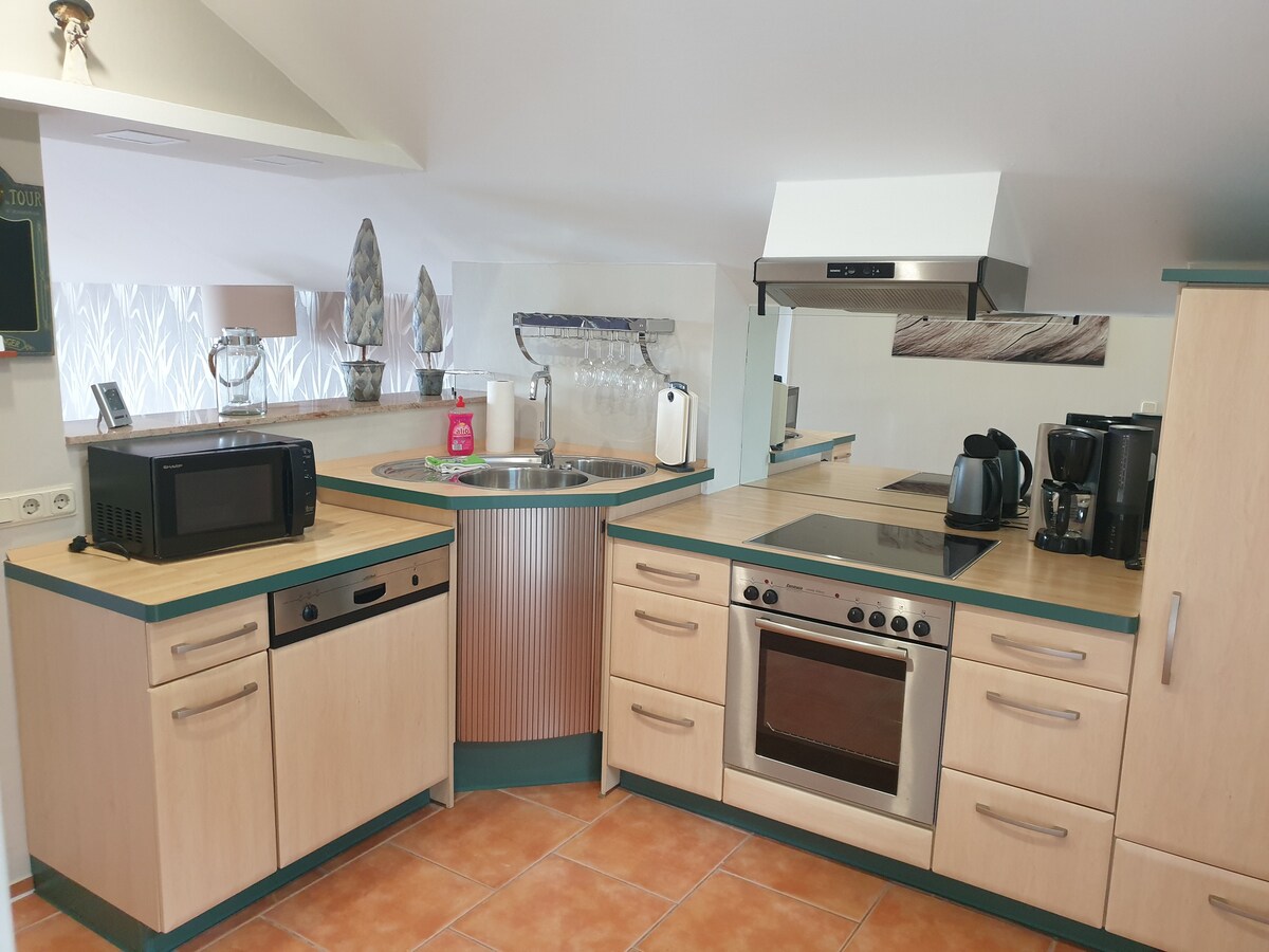 Ang magandang apartment na ito na may mala - loft na karakter ay nagbibigay - daan sa halos 360 - degree na tanawin sa mga rooftop ng Schlossberg. Sa gitna ng living area ay may magandang fireplace na may side reading corner at maaliwalas na sofa kung saan matatanaw ang kumukutitap na fireplace. Sa lugar ng pasukan, sa tabi ng daylight bathroom na may shower, may maliit na kitchenette na may dining area para sa almusal sa umaga kabilang ang mga tanawin sa lumang bayan ng Quedlinburg.