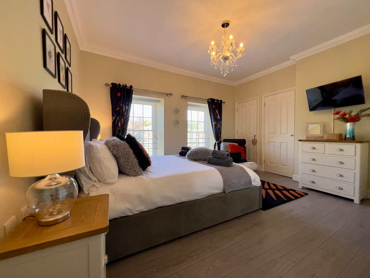 Self contained annexe with minimal cooking facilities - downstairs open plan kitchenette with microwave and hob, lounge area (smart TV), dining area. Upstairs in master bedroom king size bed, (smart TV) sloping attic roof - separate shower room with toilet and wash handbasin. Second bedroom (request booking please) single bed, sloping roof. Outside toilet and fridge if required. Welcome pack for your first breakfast. Kitchen facilities suitable for breakfast and light lunches.