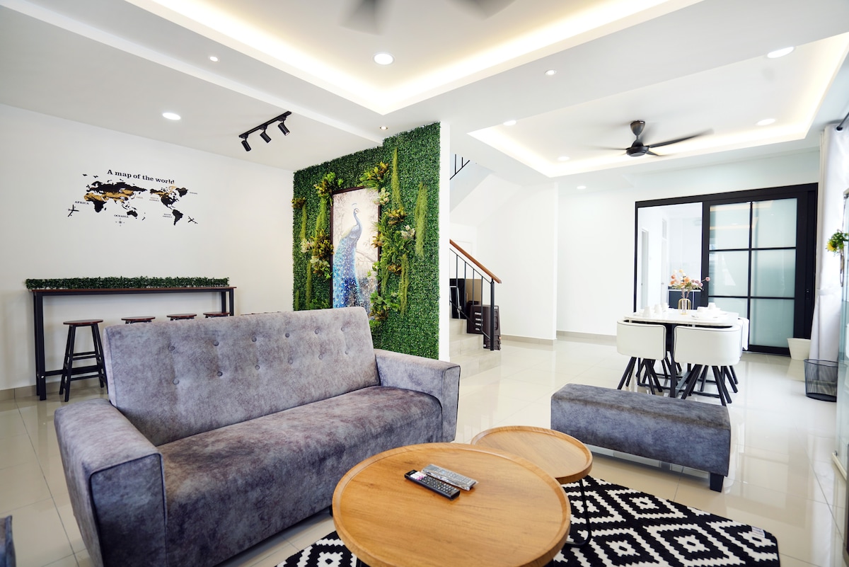 A stylish and spacious place to stay, this double-storey semi-detached villa is located right opposite Lotus Hotel and just 5 minutes away from the beach, with the coastal line in view. The villa is well-equipped with amenities such as an iron, hair dryer, kettle, microwave, fridge, towels, and toiletries. WiFi, YouTube & Netflix, a mahjong table, and BBQ utensils are also provided, but guests will need to bring their own charcoal.