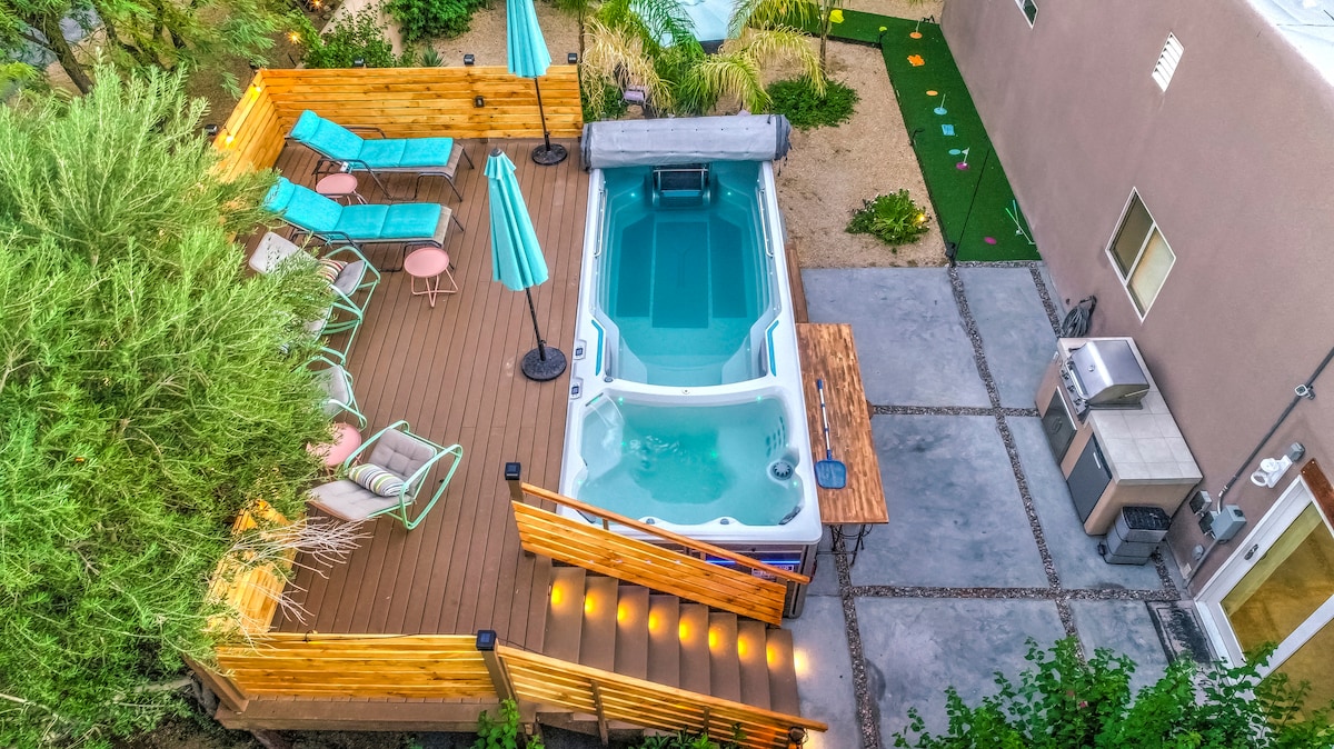 Mga Tanawin sa Pool, Cabana, 85” TV, BBQ, Spa, Trail Heads