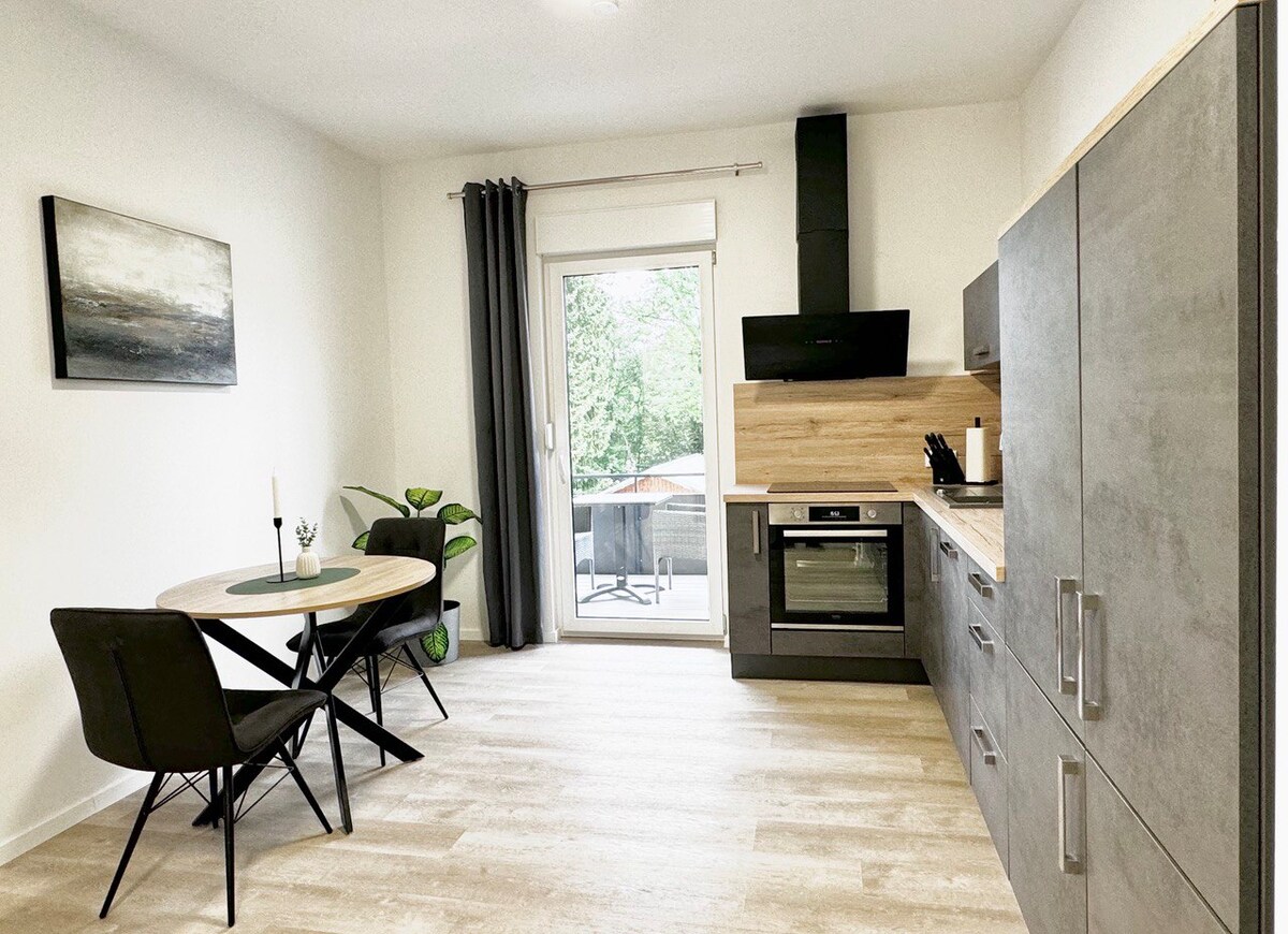 Maligayang Pagdating sa Quality Times Apartments! Naghihintay sa iyo ang aming bagong-renovate at eksklusibong apartment na may balkonahe para sa iyong maikli o pangmatagalang pamamalagi sa Detmold - Heiligenkirchen at nag-aalok sa iyo ng magandang kapaligiran at pinakamahusay na kaginhawahan: → Libreng paradahan sa labas mismo ng pinto → Kumportableng box spring bed → 43 pulgadang Smart TV na may access sa Magenta TV → Kusinang kumpleto sa kagamitan → NESPRESSO coffee machine → Iba 't ibang tsaa at kape → Gamit ang sarili mong balkonahe → Nangungunang lokasyon