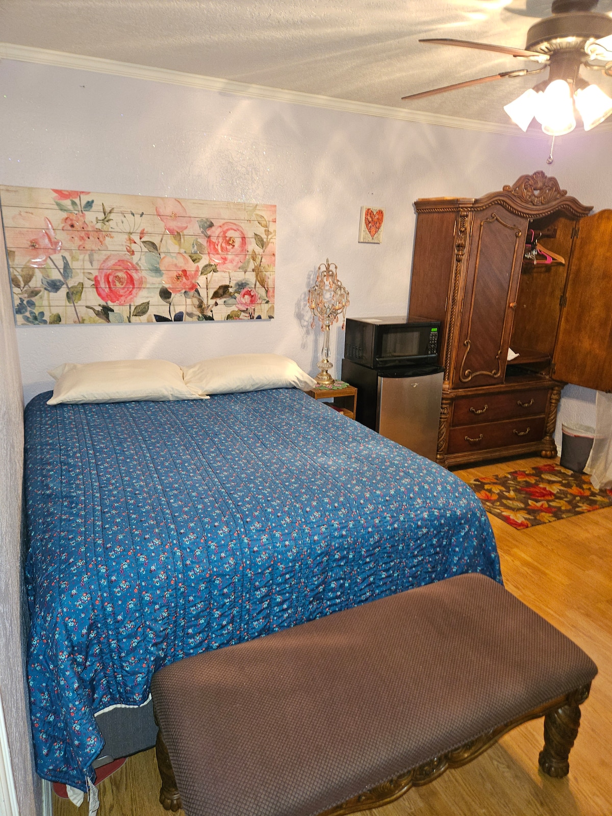 Maligayang pagdating sa isang komportableng guest house na ilang milya lang ang layo mula sa I -44, United Regional at Kell West Regional Hospitals, Sheppard AFB, at downtown Wichita Falls at MPEC. Makakatulog ang hanggang 4 na tao sa isang kuwarto sa bahay-tuluyan: queen bed (na may memory foam mattress) at daybed/couch na nagiging isa o dalawang twin bed (isa sa mga ito ay trundle), parehong may memory foam mattress. Puwedeng magsama ng mga alagang hayop pero kailangang sanay sila sa bahay at tahimik, at may maliit na bayarin para sa alagang hayop.
