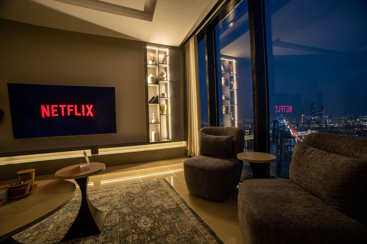 Apartment sa Burj Rafal (tirahan ng may - ari), 50+ palapag, hilagang tanawin, para sa mga naghahanap ng tahimik at kilalang tirahan, malapit sa mga pinakakilalang landmark ng Riyadh. Kumpleto sa kagamitan, dinisenyo at nilagyan ng marangyang personal na kasangkapan; may kasamang silid - tulugan na may master bed, kusina, (2) banyo. cinematic lighting, washing machine, coffee machine, 75 - inch TV at malaking screen sa silid - tulugan, air purifier filter, Mga tool sa kusina upang gumugol ng panahon ng pamamalagi sa kumpletong kaginhawaan.