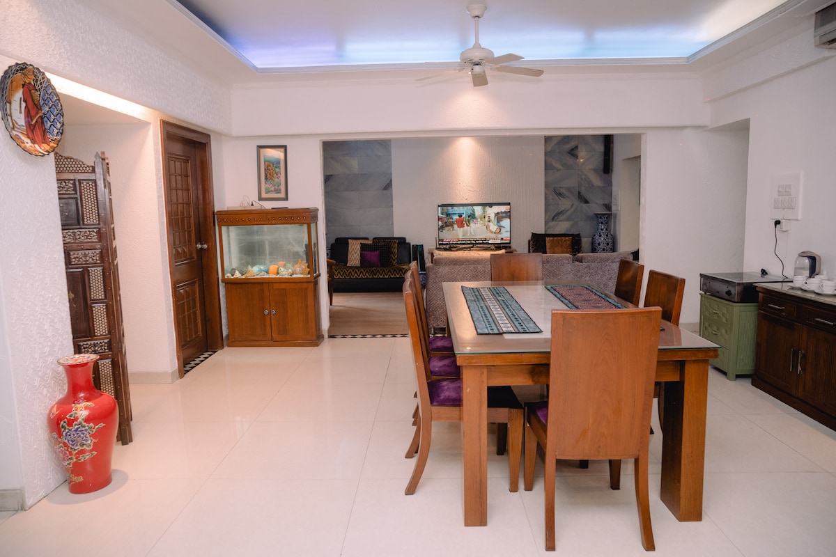 Muling makipag - ugnayan sa mga mahal sa buhay sa lugar na ito na pampamilya. malapit sa airport at lahat ng amenidad. Ilang minuto lang ang layo ng mga grocery, food chain shop. Eleganteng pinalamutian ng lahat ng mga pasilidad ng bahay. Paghiwalayin ang Gym room na may electric trade mill at iba pang mga equipments. Eksklusibong library na may malaking koleksyon ng mga libro. Tatlong 55 inch TV, 6 AC, lahat ng Banyo na may Geyeser, 6 baterya IPS na sumasaklaw sa buong apartment bilang karagdagan sa generator. Floor ofvreal wood at spanish tiles. Mga mamahaling kahoy na furnitures.