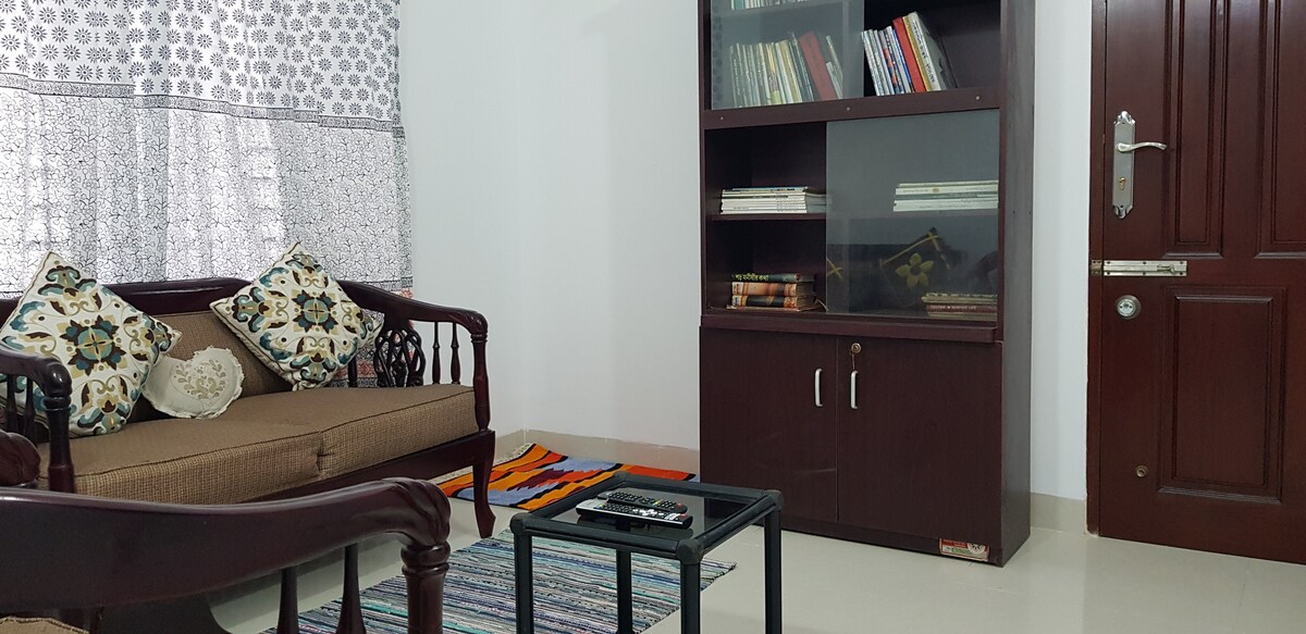 Magsaya kasama ng pamilya sa tabi ng lawa sa Uttara, 10 minutong biyahe mula sa airport at istasyon ng tren at 5 minutong lakad ang layo mula sa istasyon ng Metro. Pinapadali rin ng apartment ang: 2 maluluwang na silid - tulugan na may air condition 2 Verandas 2 lakeview open terraces na may hardin Sala na may sofa set Silid - kainan Kusina na may imbakan, refrigerator ng kalan ng gas, microwave oven, toaster Washing machine para sa paglalaba Geyser para sa mainit na tubig Plantsa at hair dryer Wifi, dish line 24 na oras na elevator at serbisyong panseguridad