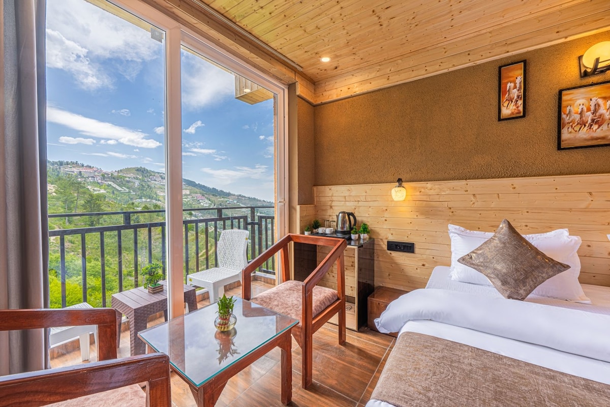 4.7 km ◆lang ang layo mula sa Shimla Airport ◆Suite set sa gitna ng mga nakamamanghang tanawin ng bundok ◆Nagtatampok ng mararangyang round bed at nakakonektang paliguan Pinapahusay ng ◆mainit na ilaw at mga naka - istilong light fixture ang kapaligiran Nag - aalok ang mga ◆eleganteng interior na gawa sa kahoy ng komportableng vibe Ang mga ◆malalaking bintana ng salamin na may malambot na puting kurtina ay nag - iimbita sa likas na kagandahan ◆Perpektong lugar para magbabad sa tahimik na kagandahan ni Shimla
