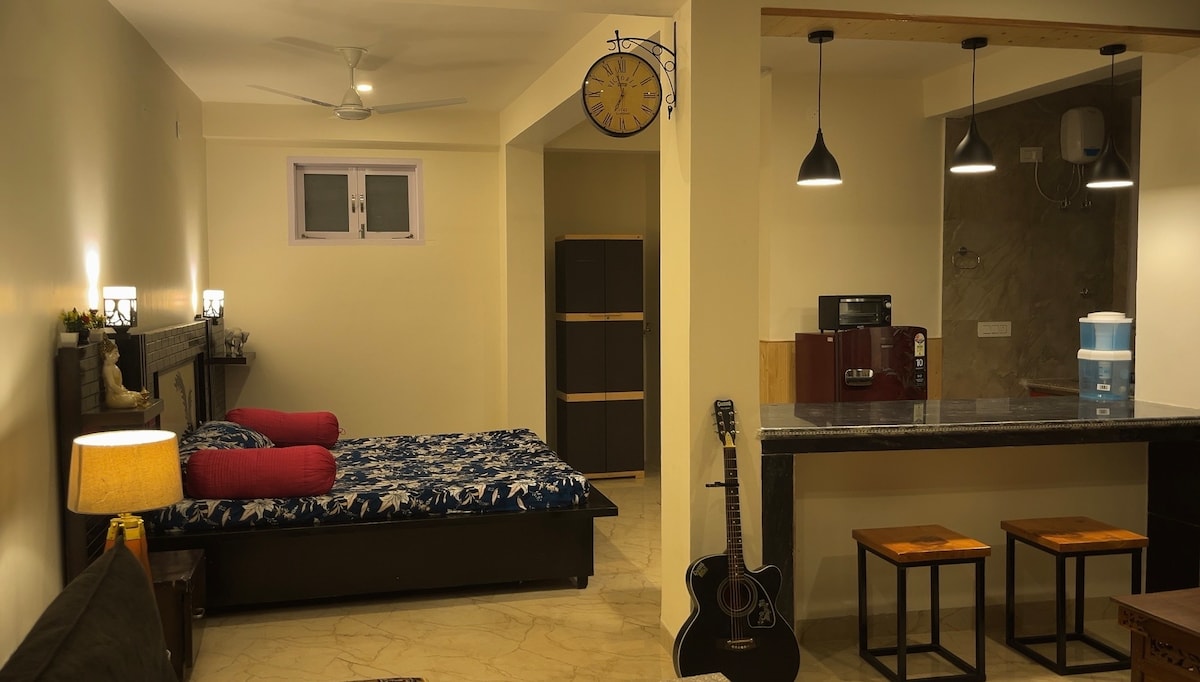 Ang apartment ay bagong itinayo at matatagpuan sa ika -2 palapag at may sapat na liwanag na dumadaan. Mayroon itong isang pangunahing silid - tulugan at isang malaking sala na may double bed. Nag - aalok ang mga bintana ng nakamamanghang tanawin ng mga nakamamanghang bundok ng Dhauladhar. Maraming magagandang restawran at kainan(lahat ay ibinigay sa ibaba) sa malapit kabilang ang hotel club Mahindra. 100 metro ang layo ng mga may - ari mula sa property at magiging masaya silang tumulong sakaling magkaroon ng anumang isyu. Available ang serbisyo ng taxi sa buong kalsada.