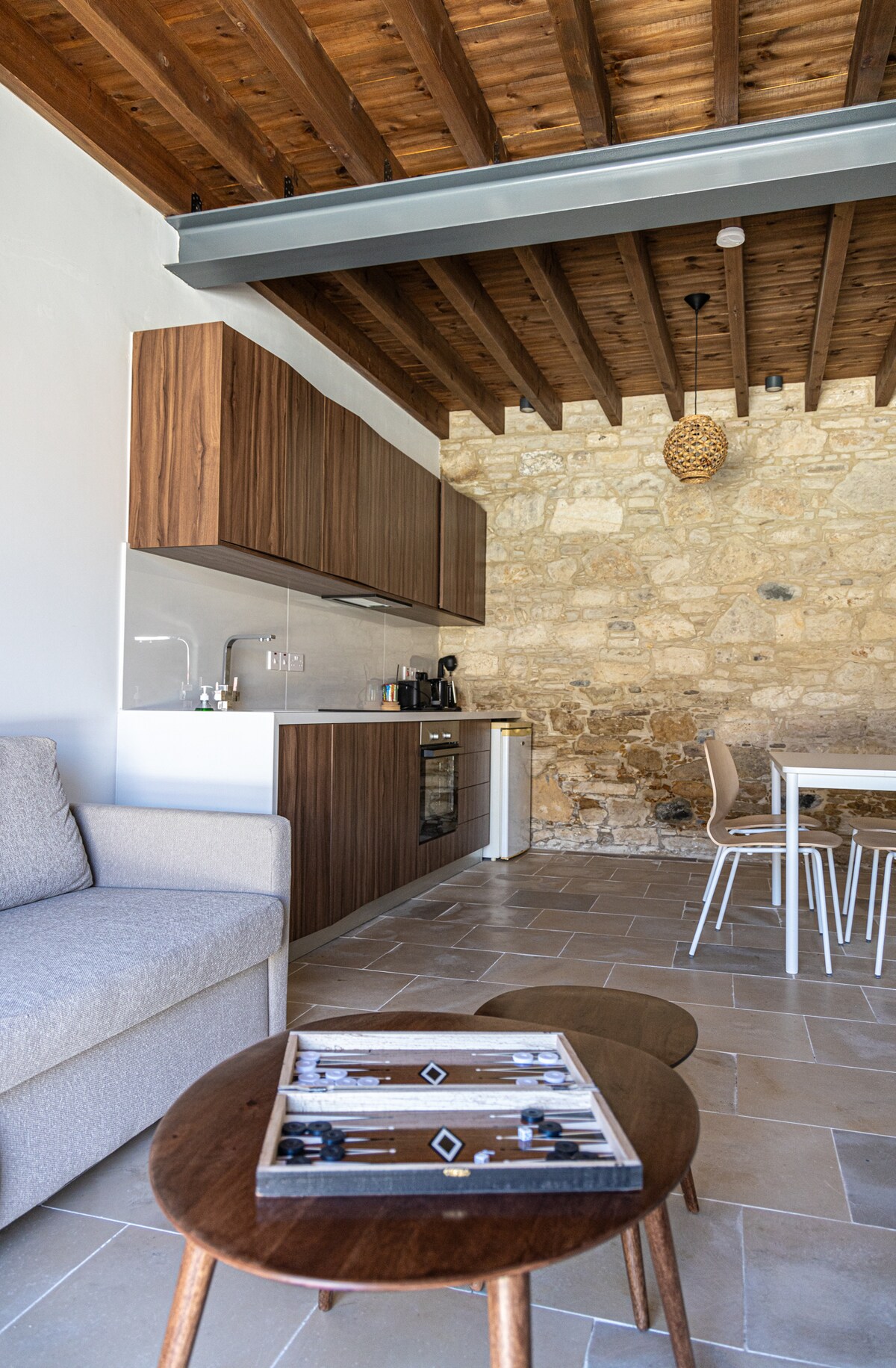 May sariling estilo ang pambihirang tuluyan na ito. Ang Palatoui Executive suite ay isa sa aming mga kamakailang karagdagan, at isa sa mga pinaka - kanais - nais na kuwarto. Pinagsasama nito ang moderno at tradisyonal na estilo sa mga detalye ng salamin, metal at bato. Sa ibabang palapag, makikita mo ang in - built na jacuzzi, fireplace, silid - tulugan, at kusinang kumpleto ang kagamitan. Nasa itaas na palapag ang kuwarto at banyo