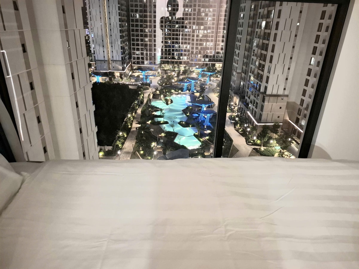 - 5* modernong tunay na estilo ng disenyo - Buksan ang view - Mararangyang muwebles + Super King bed 2mx2m2 + 2Tv 55"&43" + Netflix 4K + Soundbar + Mga Mistinger + Hapag - kainan at tea - lift + Spring Water, Cafe + Walang putol na tagahanga + Wardrobe, Seating, Makeup Table, Water Heater, Wifi, Kitchen Sound, Refrigerator, Washer, Oven & Microwave + Makinig sa hindi na - advertise na musika sa Youtube - Ilang hakbang ang layo ng sentral na lokasyon mula sa Vincom Megamall & Water Music Square - Tahimik na pahinga subukang magrelaks at magtrabaho kapag nagtatrabaho