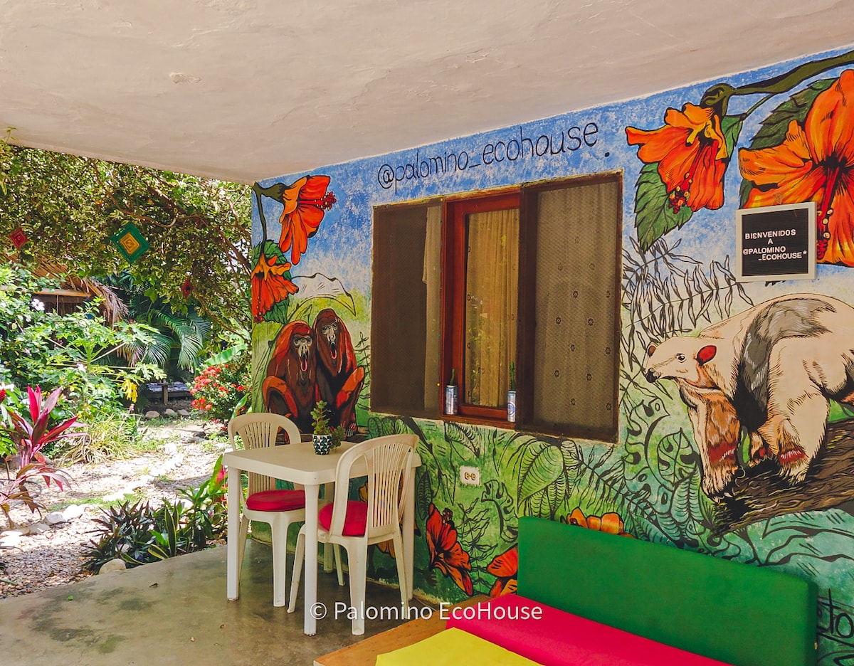 Ang Casa Rita ay isang lugar na napapalibutan ng kalikasan. 5 minutong lakad lamang ito papunta sa Palomino River at humigit - kumulang 1.5 km papunta sa beach. Matatagpuan ito sa isang tahimik na lugar at malapit pa sa mga restawran sa pangunahing kalye ng lungsod. Ang kusina, silid - kainan at mga sosyal na lugar ay pinaghahatian ng 3 cabin, na lumilikha ng tahimik at kaaya - ayang kapaligiran. Mayroon kaming wifi at solar panel para sa mga kailangang mag - online. Hanapin kami sa Instagram bilang casa_rita_