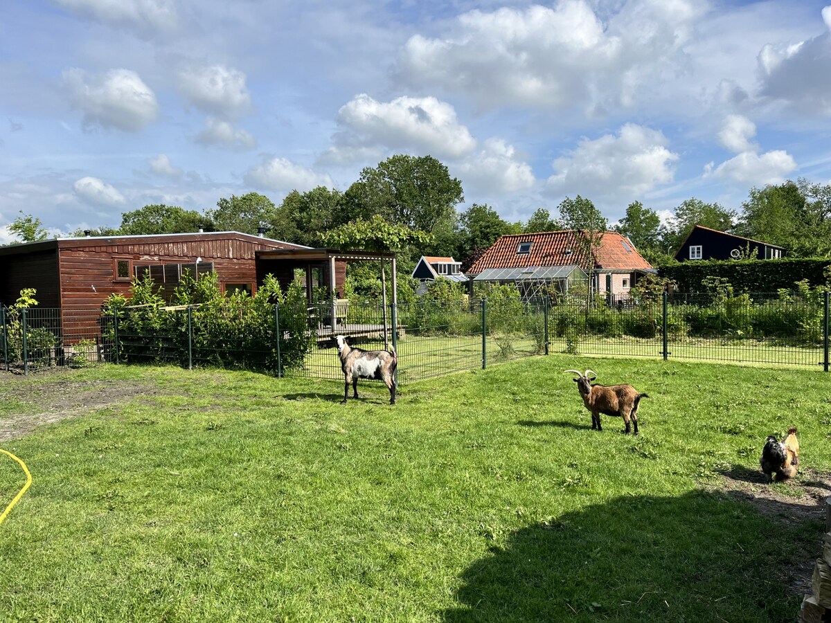 Charmant & Luxe Tiny House. Relaxen aan het water van het unieke natuurgebied het Rijk der Duizend Eilanden Slaap in een kingsize bed 180x220 met uitstekend matras. Wandelen, fietsen, strand, bos, suppen, varen, kajakken of mountainbiken. Het hoogste duin van Schoorl. Restaurants op loopafstand of genieten van haardvuur onder de veranda a/h water. Smart-tv, Netflix en WiFi Nespresso, thee en snoepjes Amsterdam, Alkmaar, Bergen aan zee, Schoorl, Egmond, Callantsoog Uitgeslapen groet, Ruby