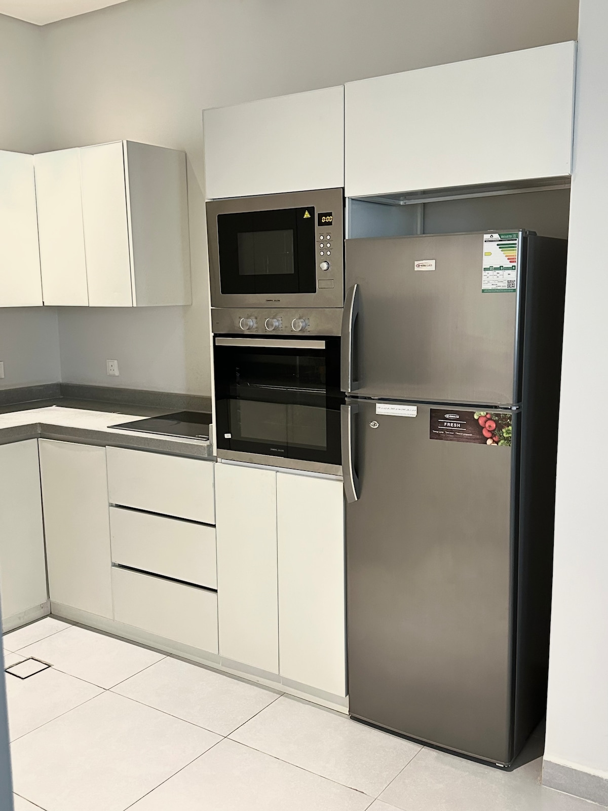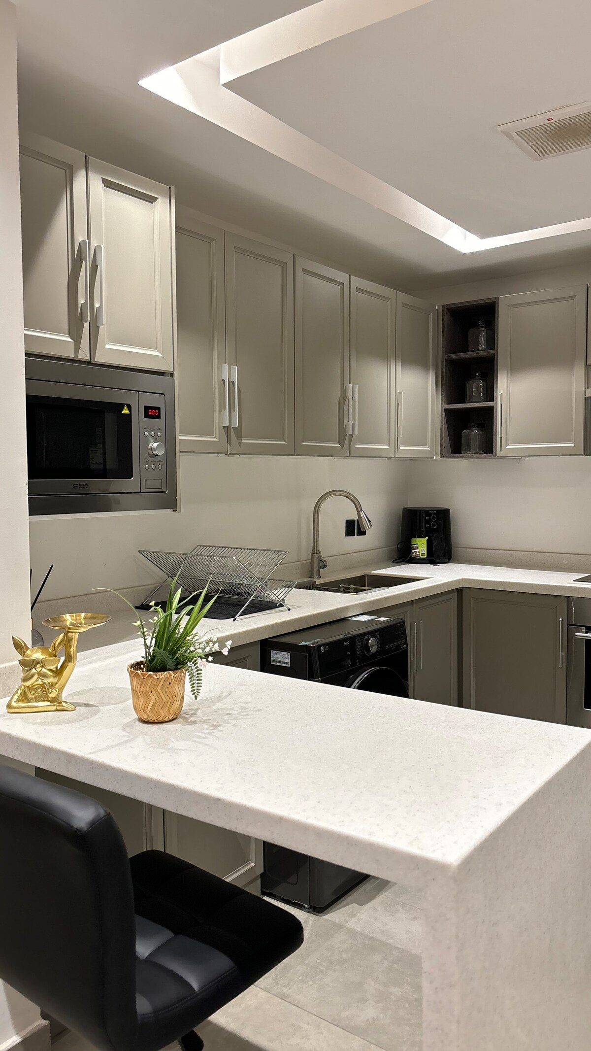 Modern 1BR in Hittin, one of Riyadh’s prime locations, minutes from Boulevard City and top cafes. Designed for comfort and ease with self check-in and a full smart system. Features a cozy living area, comfortable bedroom, 85” Smart TV, and an elegant electric fireplace for a relaxing atmosphere. Fully equipped kitchen with oven, microwave, electric stove, dishwasher, and washing machine. Clean, stylish, and ideal for couples, business travelers, and short or extended stays.