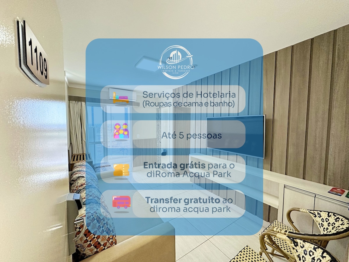 TUNGKOL SA LOKASYON: * Water park na may mahigit sa 10 swimming pool. * Ofurôs * Sauna * Game lounge * Brinquedoteca * Palanguyan para sa mga bata * Restawran * Ramp at Waterslide * Wave pool * Gym * Gourmet space * Teatro * Pool na may swimming - up bar. ▪️Kung magkakansela ka, ipaalam ito sa amin nang maaga. Hinihiling ▪️ko na basahin mo ang BUONG paglalarawan, salamat! ▪️Kung gumagamit ang bisita ng alinman sa mga kagamitan sa kusina, mahalagang linisin niya ang lahat ng ginamit niya, para sa kaginhawaan ng susunod na bisita!