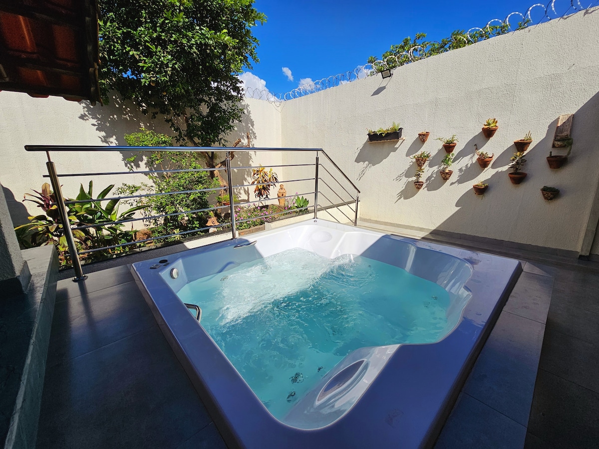 Magrelaks kasama ang buong pamilya sa tahimik na tuluyan na ito. Ang Casa Boutique Veraneios 2 ay ang aming pinakabagong bahay sa Caldas, na may swimming pool, 65 - inch TV, air - conditioning sa lahat ng kuwarto, workstation, Wi - Fi, espasyo para sa iyong alagang hayop, isang barbecue area, at tinatanggap ka namin at ang iyong pamilya nang may mahusay na pagmamahal sa lugar na ito. 3.5 km mula sa sentro ng lungsod, na may magagandang supermarket , parmasya, gym at lahat ng iba pa sa malapit. Kumpleto ang bahay sa mga gamit sa higaan !