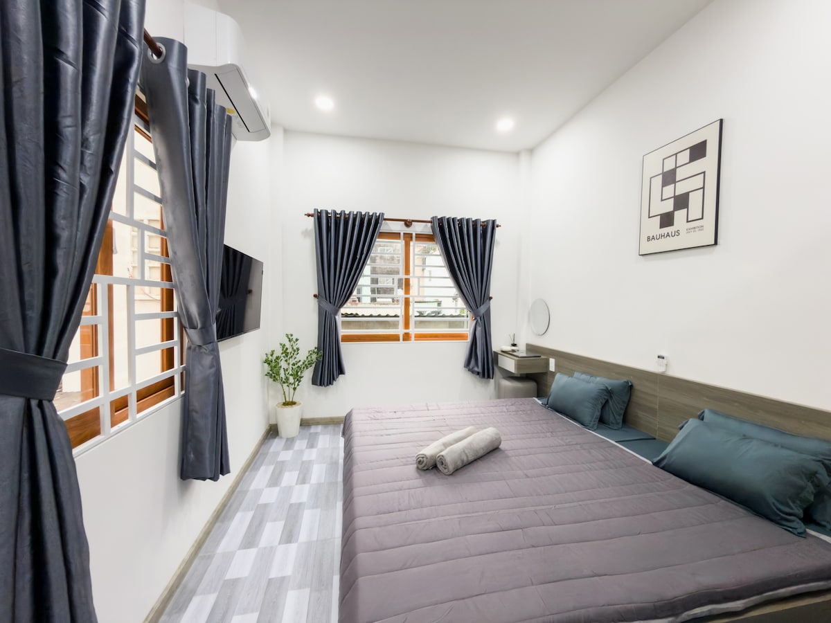 Maganda ang pag - IISIP MO RITO ^^ Central na lokasyon ng District 3 sa kalye ng Ly Chinh Thang. 25m2 na studio apartment, 1 malaking higaan, sariling pasukan, elevator, hagdan. Karaniwang espasyo: Washing machine, dryer, refrigerator, open kitchen Mga kumpletong pasilidad para sa pamilya ng pangmatagalang pamamalagi at simpleng 24/7 na proseso ng pag - check in. Patungo sa sentro ng lungsod ng District 1 (1.5KM) Reunification Palace (1.3KM) Ang Simbahan ng Manok (1.8KM) Bến Thành Market (2KM) Istasyon ng tren (0.6KM); International/Domestic Airport 3 km.. LeTu Apartment!!
