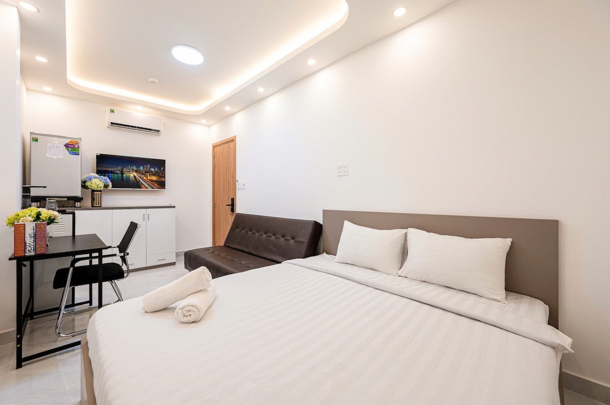 - Isang naka - istilong studio ng Mersey Ben Thanh Saigon Apart 'Hotel - isang miyembro ng HoLo & Mersey Hospitality. - Ang MAS MALAKING GRUPO ay maaaring mag - book ng iba pang mga kuwarto upang manatili dito nang sama - sama. - Malapit sa Ben Thanh Market, Nguyen Hue, Pham Ngu Lao & Bui Vien Area - Bagoat Naka - istilong dinisenyo Studio - Napapalibutan ng lahat ng atraksyong panturista - Pribadong kusina at Pribadong banyo - Posibleng maingay - Bawal manigarilyo - Hindi pinapayagan ang mga alagang hayop - Mga Bayarin sa Deposito at Utility para sa matagal na pamamalagi na ipagbigay - alam sa oras ng pagtatanong