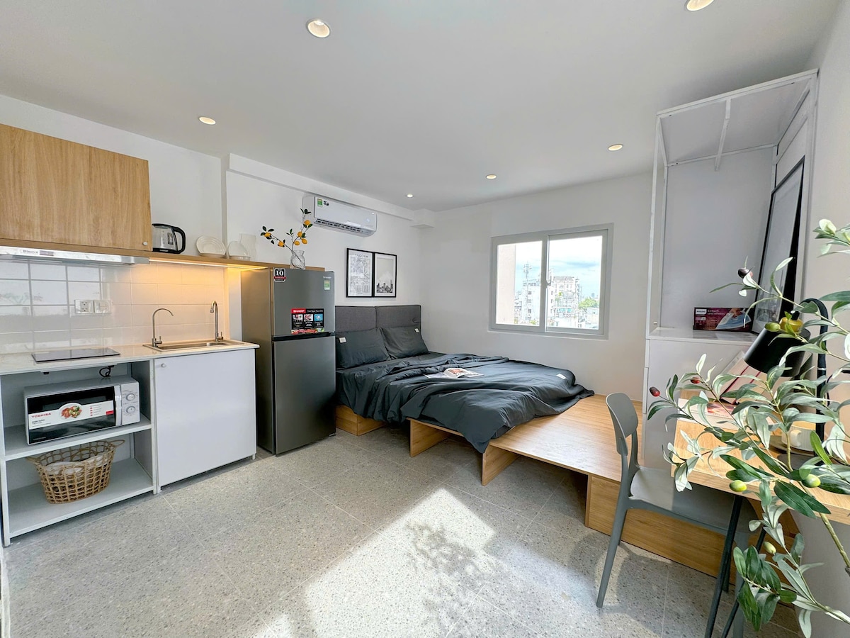 Makaranas ng modernong bakasyon sa gitna ng Saigon Maligayang pagdating sa studio apartment sa Cubicity Hoang Dieu - District 4. Mula rito, madali mong mabibisita ang mga sikat na lugar tulad ng kalye sa paglalakad ng Nguyen Hue at makakapagrelaks sa kahabaan ng mahangin na Saigon River. Ang apartment ay may moderno at komportableng estilo, na kumpleto sa mga high - class na muwebles para sa perpektong bakasyon. Kapag namamalagi ka sa Cubicity, masisiyahan ka sa tahimik at romantikong tuluyan na tiyak na magbibigay sa iyo ng mga di - malilimutang karanasan.