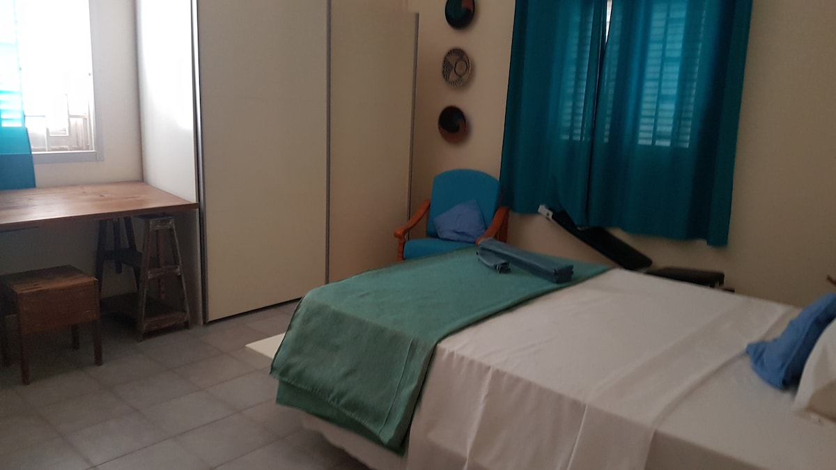 Inilalaan namin ang bahagi ng aming tuluyan sa mahahabang pamamalagi kabilang ang silid - tulugan na ito na may banyo na ibabahagi. Tamang - tama para sa mga taong darating sa isang misyon mula sa ilang araw hanggang ilang buwan. Available sa kanila ang buong property, kabilang ang kusina. Iyon ang dahilan kung bakit hindi kasama ang almusal sa presyo ng kuwarto. Gayunpaman, maaari namin itong idagdag para sa mga customer na humihiling nito sa pagdating (usd 8).