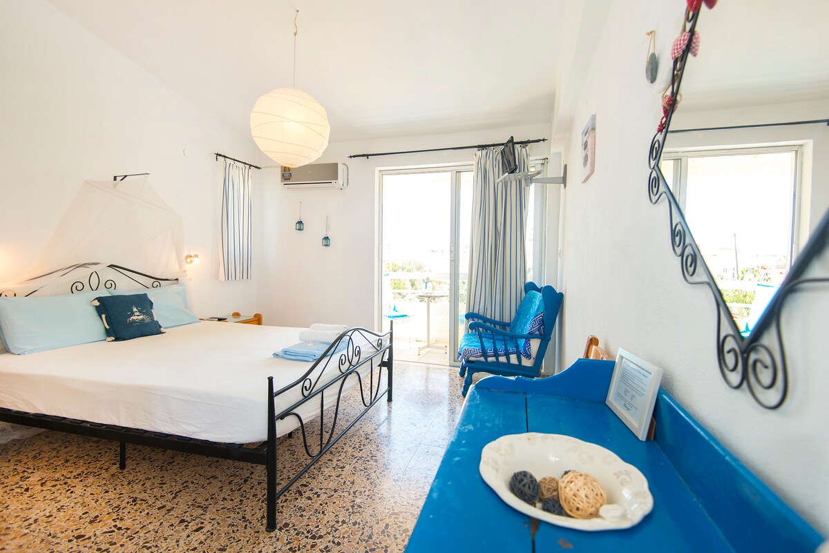 Magugustuhan mo ang pansin sa detalye sa naka - istilong tuluyan na ito. Matatagpuan sa nayon ng Karterados, nag - aalok ang Anna Pension ng tahimik at pampamilyang hospitalidad na parang nasa bahay ka lang, 1.5 km lang ang layo mula sa Fira na siyang kabisera ng Santorini. May libreng Wi - Fi sa lahat ng lugar. Nilagyan ang lahat ng naka - air condition na unit ng TV, refrigerator, at orthopedic na kutson. Mayroon silang pribadong balkonahe kung saan matatanaw ang dagat o hardin.