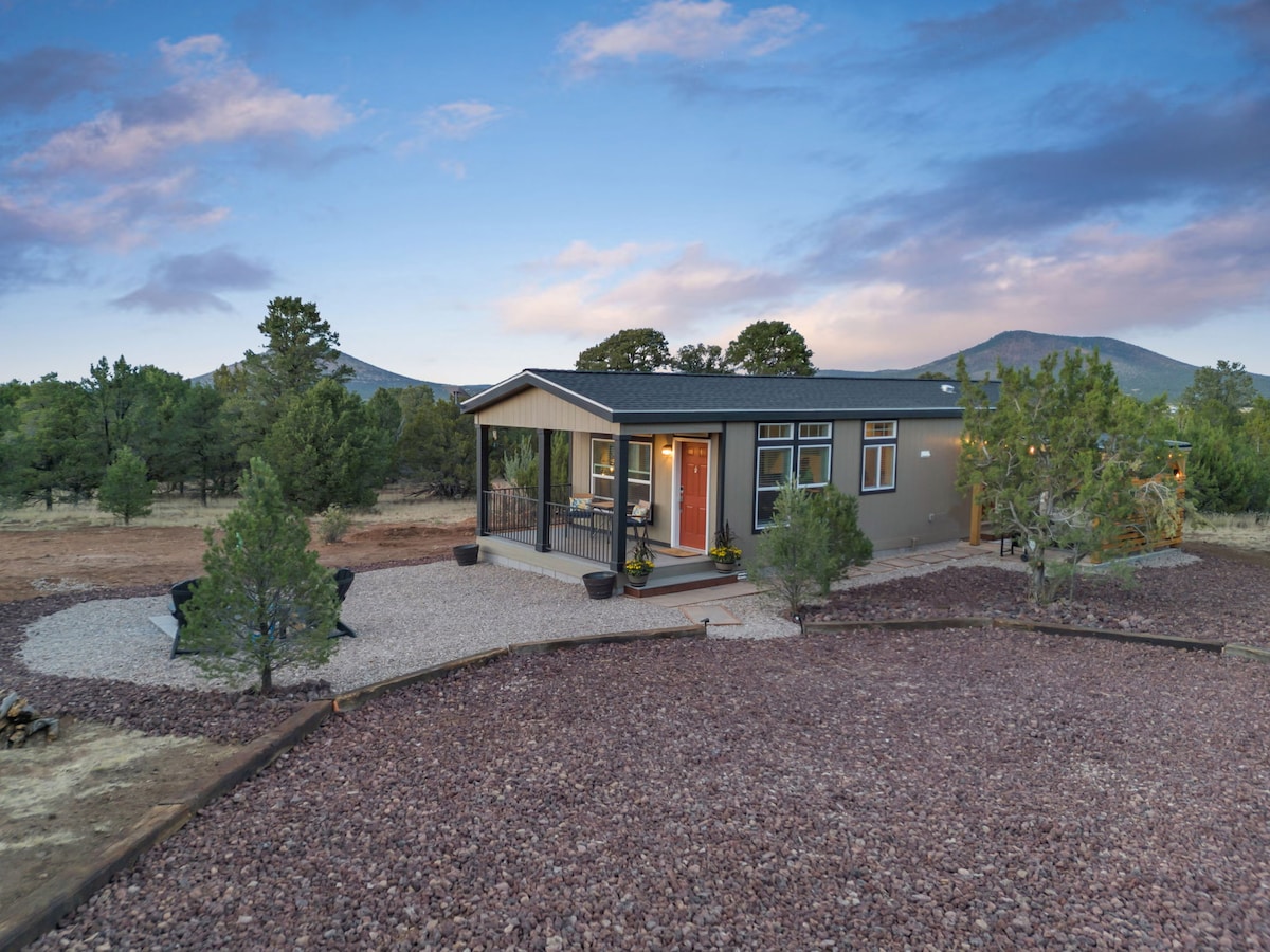 Ang @AFrameFlagstaff ay isang munting bahay na A - Frame sa 1.5 ektarya sa National Forest. Itinampok sa kampanyang American Eagle Outfitters sa buong mundo. Mainam para sa aso. AC. Epic glamping at stargazing. 10 min papunta sa makasaysayang downtown/Route 66. 15 min papunta sa Walnut Canyon, Sunset Crater, Wupatki National Parks, nau, AZ Snowbowl. 30 min papunta sa Meteor Crater at Sedona. 90 min papunta sa GRAND CANYON, Horseshoe Bend, Antelope Canyon, at Petrified Forest. 2.5hrs papunta sa Monument Valley. Malapit na ang aming listing na "Tiny Mountain View Sauna Cabin"