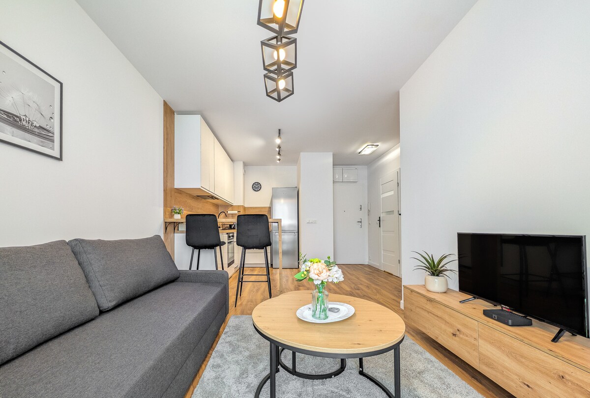Ang tuluyan ay matatagpuan nang direkta sa tahimik na ilog Oława, na bagong itinayo (2018/2019). Mula sa itaas na palapag, masisiyahan ka sa natatanging tanawin mula sa istadyum hanggang sa mga bundok. Inaanyayahan ka ng 40 metro kuwadrado ng sala + balkonahe pati na rin ng de - kalidad na modernong kagamitan na maging komportable ka. Mainam ang apartment para sa mga business traveler at romantikong bakasyon para sa mga mag - asawa.