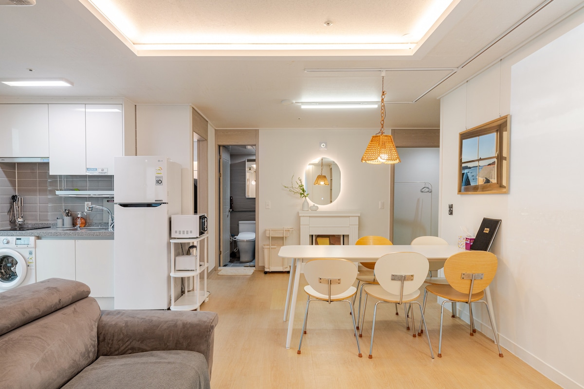 Available ang bahay sa loob ng mahabang panahon sa makatuwirang presyo. Na - optimize para sa mga pangmatagalang biyahe at pangmatagalang biyahe. Mag - book lang para sa mga mamamalagi nang hindi bababa sa 3 gabi. Matatagpuan may 2 minutong lakad mula sa Jungang - dong Station, mapupuntahan ang Hotel 40 Step sa pamamagitan ng taxi mula sa Busan Station. Matatagpuan ito sa pag - print ng eskinita ng Donggwang - dong, kaya ito ang panimulang punto para sa pamamasyal sa Jung - gu, Busan, simula sa 40 hakbang sa paligid ng Yongdusan Park, Busan Tower, Kukje Market, Bupyeong - dong Kangtong Market, at Bosu - dong Bookstore Alley. May magandang pampublikong transportasyon tulad ng subway, bus, atbp., kaya libre ring lumipat sa mga hot spot ng Busan tulad ng Haeundae, Gwangalli, at Yeongdo. Hindi ako maaaring manatili sa ilalim ng 19 na taong gulang ~ (Maliban sa mga tagapag - alaga)