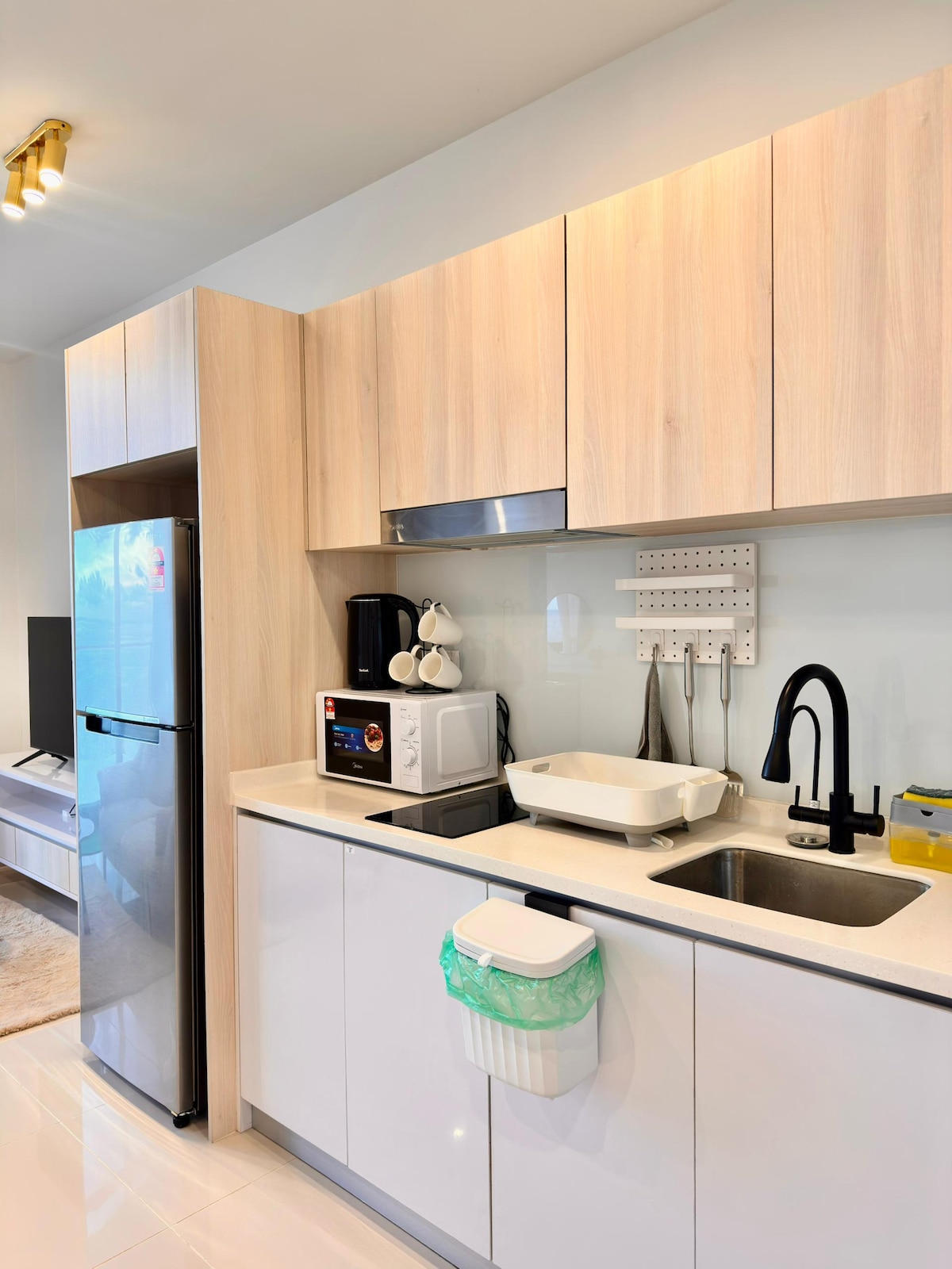 Matatagpuan ang Bay Premier Suites by HG sa Likas Bay, Kota Kinabalu.Direktang access sa beach mula sa apartment.Mga trail sa paglalakad at pagbibisikleta sa malapit. Maginhawang matatagpuan ang apartment sa harap ng Likas waterfront, 5 minutong lakad papunta sa mga restawran, Li Beach, supermarket, atbp. Humigit‑kumulang 8 km ang layo sa Kota Kinabalu Airport. Jesselton Point, mga 3 minutong biyahe ang layo. Kumpleto at maluwag (Hindi isang nakahating kuwarto). 2 silid-tulugan, 1 sala. Komportable at maluwag para sa 4 na tao. Nilagyan ang bahay ng: Balkonahe (may lugar para sa paninigarilyo), aircon, induction cooker, refrigerator, at electric kettle. Ang apartment ay nilagyan ng: Indoor na paradahan, outdoor hanging swimming pool, palaruan ng mga bata, restawran, labahan.