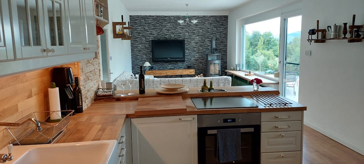Magiging komportable ang buong grupo sa maluwag at kaakit‑akit na tuluyan na ito. Palaging may espesyal na bagay sa malaking mesa o sa terrace sa bilog ng malaking pamilya, kasama ang isa pang pamilya ng mga kaibigan, o kasama ang kanilang sariling mga kaibigan para magluto, maghurno, mag - party, tumawa. Isang magandang bahay na gawa sa purong kahoy na malapit sa mga ski resort ng Semmering at Stuhleck, malapit sa mga hiking area ng Schneeberg at Rax. Available nang libre ang mga bisikleta.