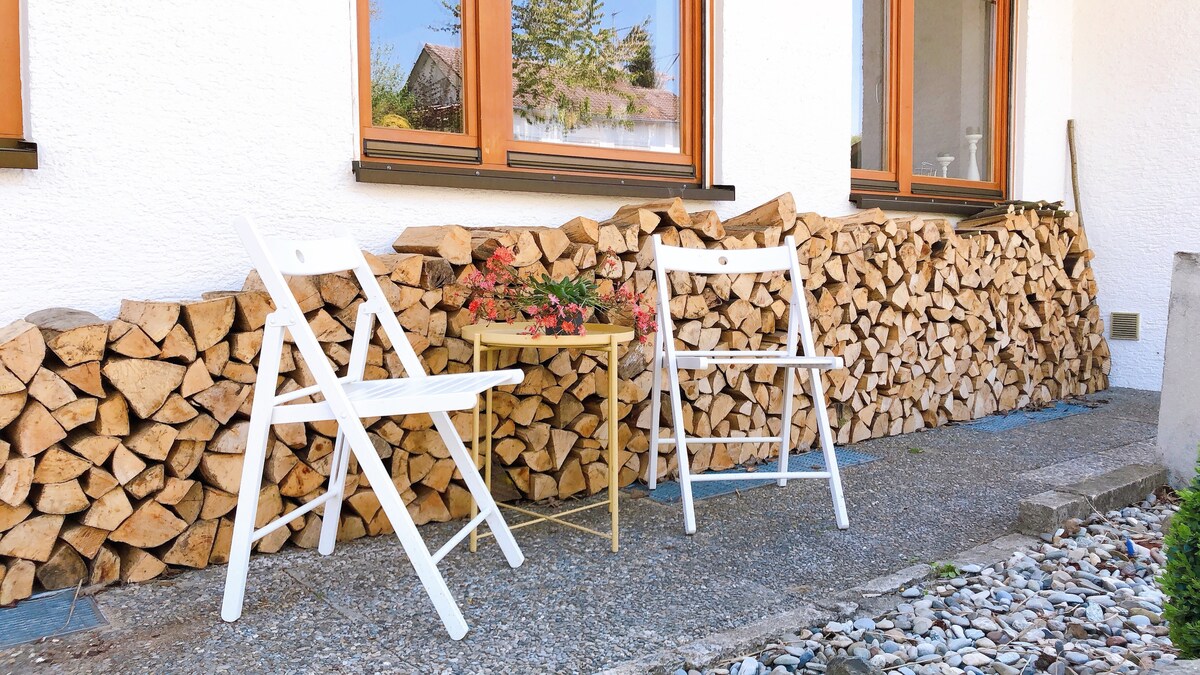Magrelaks sa aming tahimik, maluwag at pambihirang apartment na "Buddha - Soft" sa 80 sqm ng sala, 2 silid - tulugan, 1 malaking sala, 1 conservatory - tulad ng silid - kainan, 1 maluwang na bagong banyo at modernong bagong kagamitan sa kusina. Mayroon ding maliit na panlabas na seating area at pribadong paradahan ng kotse sa harap mismo ng pasukan. Isang napaka - espesyal, walang stress na bakasyunan, malayo sa kaguluhan ng sentro ng lungsod ng Ulm at 14 na minuto lang ang layo.