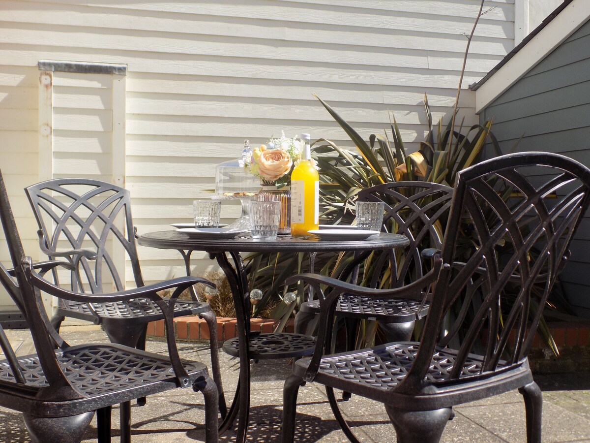 Isang magandang Mews House, na nakatago sa loob ng isang magandang patyo, isang daan pabalik mula sa beach at ilang sandali mula sa bayan. May naka - istilong open plan interior at dalawang komportableng kuwarto na may kingsize at twin single bed. Ang maaliwalas na patyo na may sarili mong mesa at mga upuan ay ang perpektong lokasyon para ma - enjoy ang umaga ng kape. Ang open plan lounge / kusina at kainan ay ang perpektong lugar para makapagpahinga pagkatapos ng abalang araw sa beach o pagtuklas sa Dorset. May malaking flat screen TV at wifi.