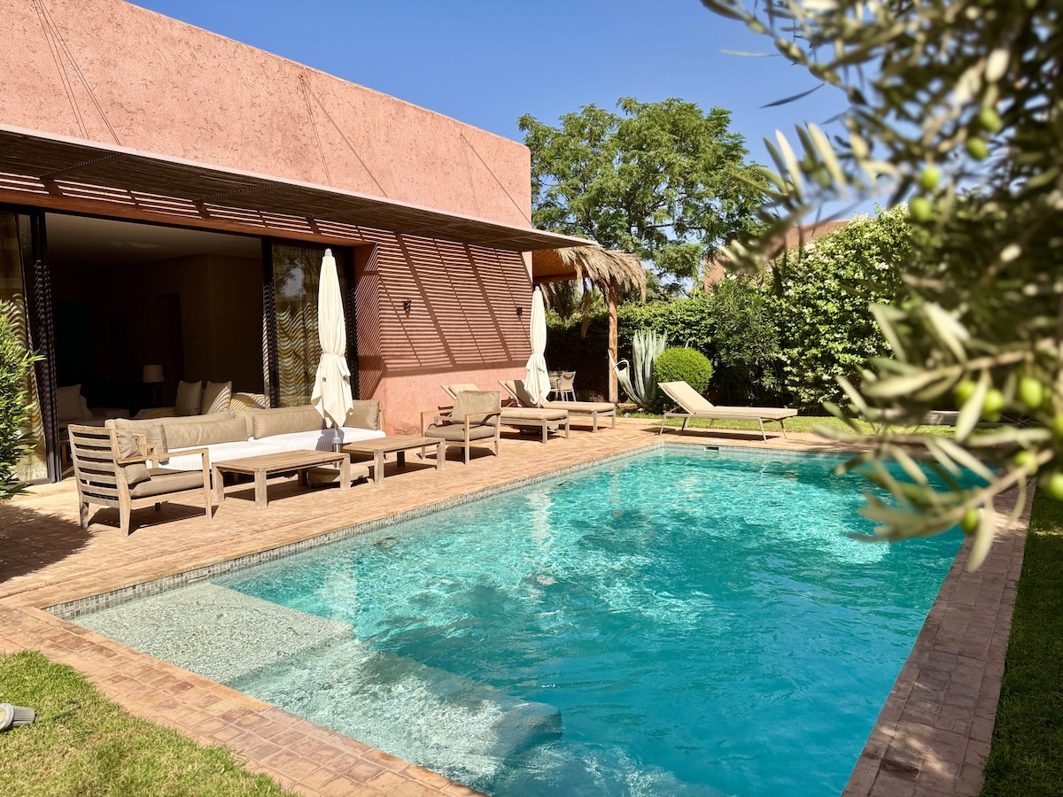 Sa Villa Maamora, hindi ka lang pumupunta para mamalagi, pumupunta ka para maranasan ang isang sandali. Idinisenyo ang lugar na ito para sa pagkikita, pagdiriwang, at pagpapahinga. Isang mapayapang kanlungan sa pagitan ng mga puno ng palma at mga bundok, ng Atlas at ng medina, nag-aalok ang villa ng pinapainit na pool, malagong hardin, at 4 na komportableng kuwarto para sa nakakarelaks na pamamalagi sa Marrakech. Isang villa na may Moroccan charm, nag-aalok ito ng pambihirang balanse ng espasyo, katiwasayan, at kasiyahan, na perpekto para sa mga shared na tuluyan na naghahanap ng araw at kapanatagan.
