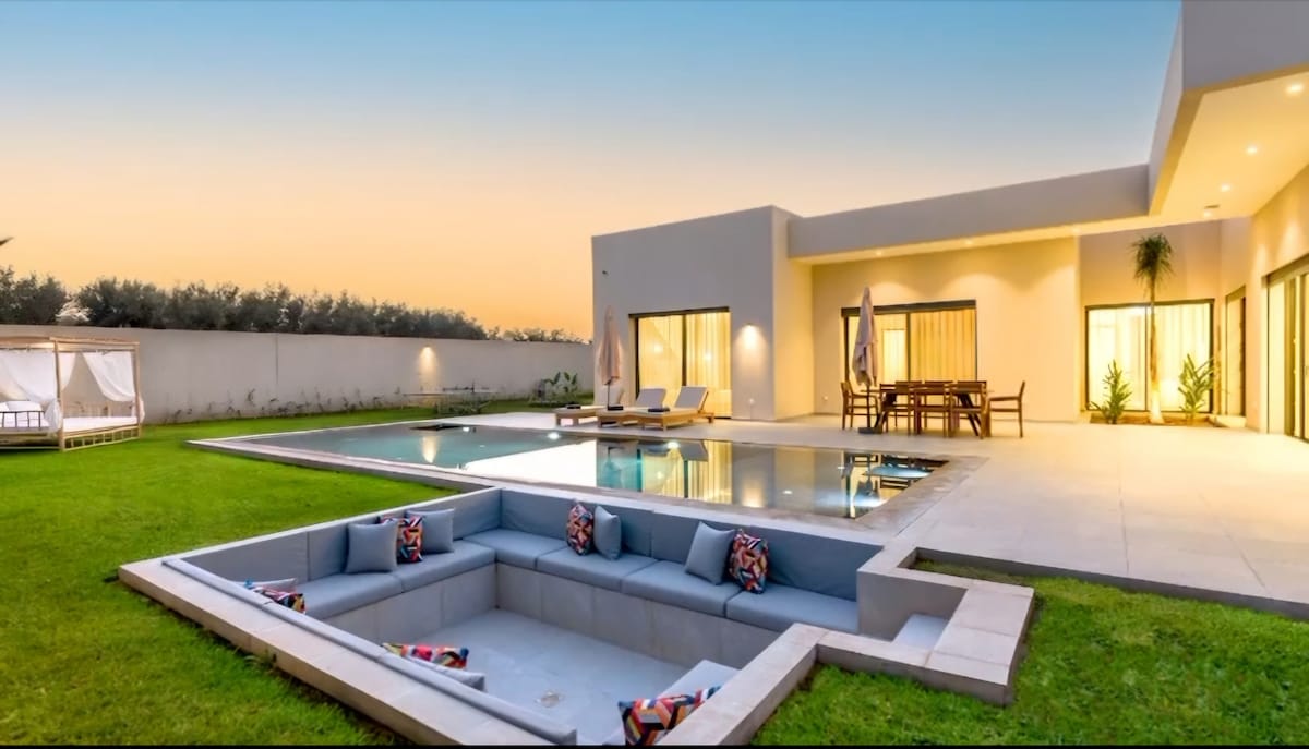 🏆 Bagong Luxury Villa sa Marrakesh | Heated Pool • Atlas View • Golf Bagong marangyang villa sa Marrakech, Ourika road, 15 min mula sa sentro. Mayroon itong 4 na eleganteng suite na may king size na higaan (200 x 200), pribadong pinainit na pool, hardin, mga terrace na may BBQ at nakamamanghang tanawin ng Atlas Mountains. Tirahan na may golf at seguridad sa lugar buong araw (3 istasyon). May kasamang tagapangalaga ng bahay at tagaluto. Mainam para sa mga pamilya, kaibigan o mag - asawa.