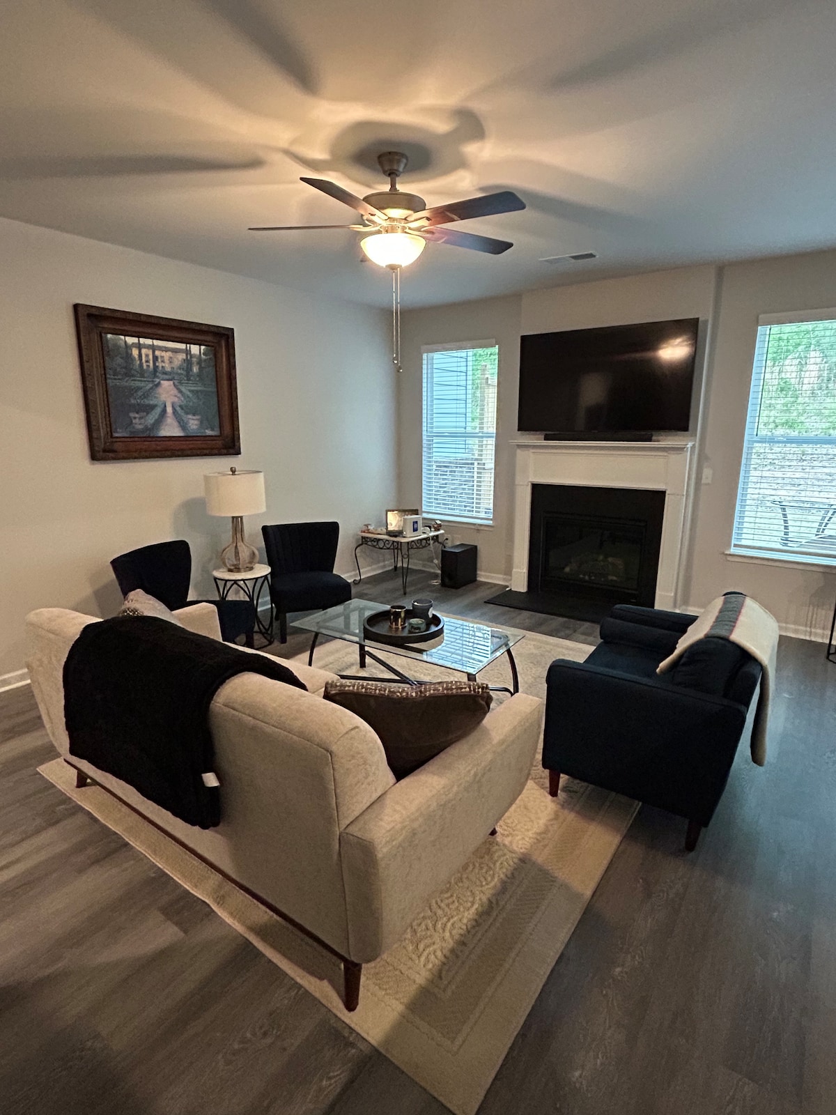 Welcome to your stylish and comfortable home away from home in Austell, Georgia! This beautifully maintained end townhome offers the perfect blend of modern comfort and cozy charm—ideal for families, couples, or business travelers. Step inside to a thoughtfully designed living space featuring a bright, open layout. The living room is perfect for relaxing after a long day, complete with comfortable seating. Natural light pours in through large windows, creating a warm and inviting atmosphere.