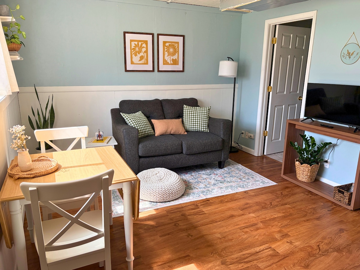 Malapit ang aming patuluyan sa pampublikong transportasyon at mga pangunahing kalsada, pero nasa residensyal na kapitbahayan pa rin ito na may paradahan sa labas ng kalye. Malapit din sa KU Campus, isang pangunahing grocery store at maraming restawran. Mga 7 minutong biyahe mula sa downtown Lawrence. Mainam para sa mga mag - asawa, solo adventurer, at business traveler. Libreng laundry machine sa site! Isang silid - tulugan na may queen size bed. Available ang sofa/air mattress sa sala para sa ikatlong tao.