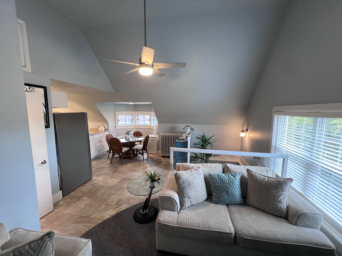 Matatagpuan ang unit na ito sa ika -3 palapag ng 3 palapag na gusaling ito at naa - access lang ito sa pamamagitan ng mga hagdan at walang elevator. Mayroon itong maluwang na layout na may sala, kuwarto, opisina, paliguan, at kusina na bukas sa sala. Malalaking bintana sa buong yunit, dagdag na espasyo sa aparador, pantry, at breakfast bar.