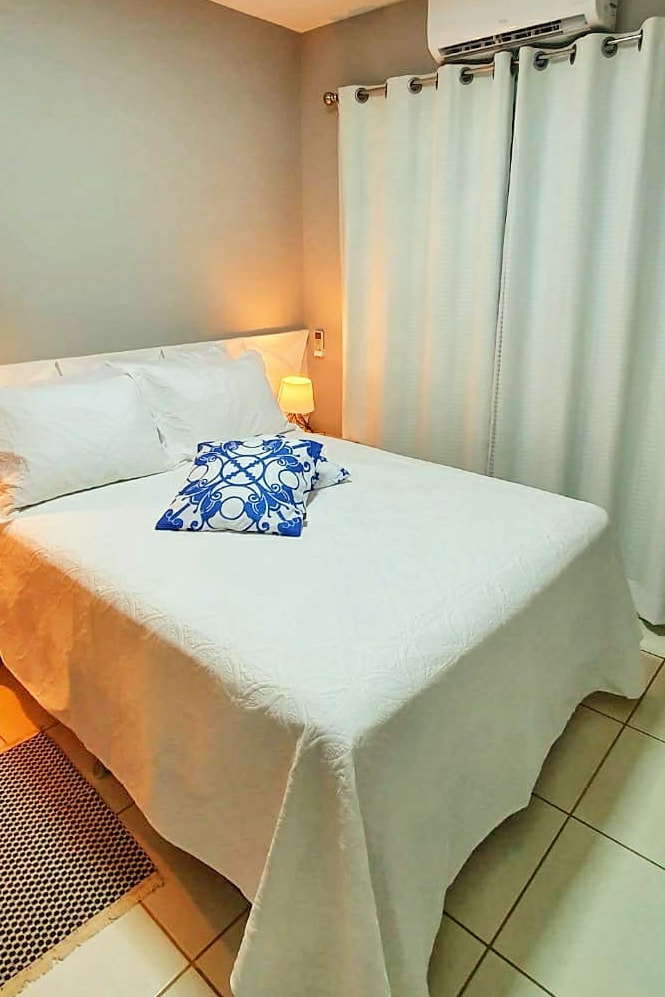 Komportableng apartment sa isang condominium, na may 01 pribadong parking space, dalawang silid-tulugan na may air conditioning (01 double bed at dalawang single bed), mataas na kalidad na pocket spring mattress sa lahat ng kama, mesa, kabinet, banyo, TV at silid-kainan, kusina na may mga kagamitan sa bahay at service area. Matatagpuan sa tahimik na kapitbahayan malapit sa Unigran, Cerrado Brasil, Hospital Universitário at mabilis na access sa avenue sa UEMS Campus, UFGD, Hospital do Amor at airport