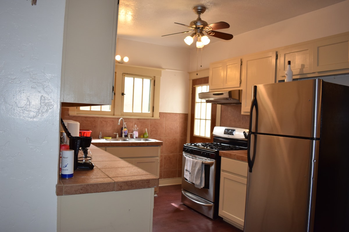 Salamat sa pagtingin sa aming listing at hinihikayat ka naming basahin ang aming mga review! Nilayon naming gawin ang aming casita na tuluyan na gusto naming tuluyan. Ang nakakarelaks na tuluyan na ito ang magiging pribadong bakasyunan mo sa downtown ng ABQ. Magrelaks at iparada ang sasakyan mo sa likod ng electric gate namin na hindi sa kalsada. May patyo/bakuran ang pribadong studio na ito at madaling makakapunta mula rito sa mga magandang restawran, coffee shop, at serbeserya sa ABQ, New Mexico. May king‑size na higaan, full bathroom, walk‑in closet, at daybed para sa ikatlong tao sa studio.