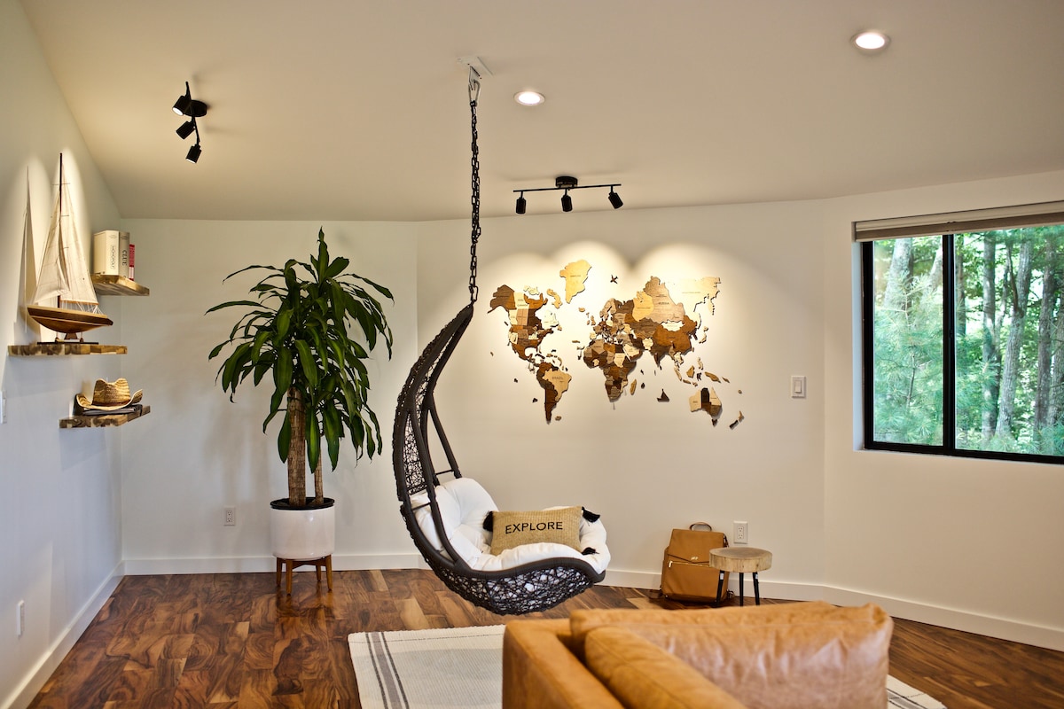 Nestled in a mountainside neighborhood just outside of downtown Asheville, the Boho Haven in the Trees offers a peaceful yet convenient-to-everything experience. Want to walk or ride bikes downtown? We are just a mile away. Want to chill on a balcony in the trees with a mountain view and a fire pit? We got you. Come experience the luxurious Boho Haven and live life like an Asheville local