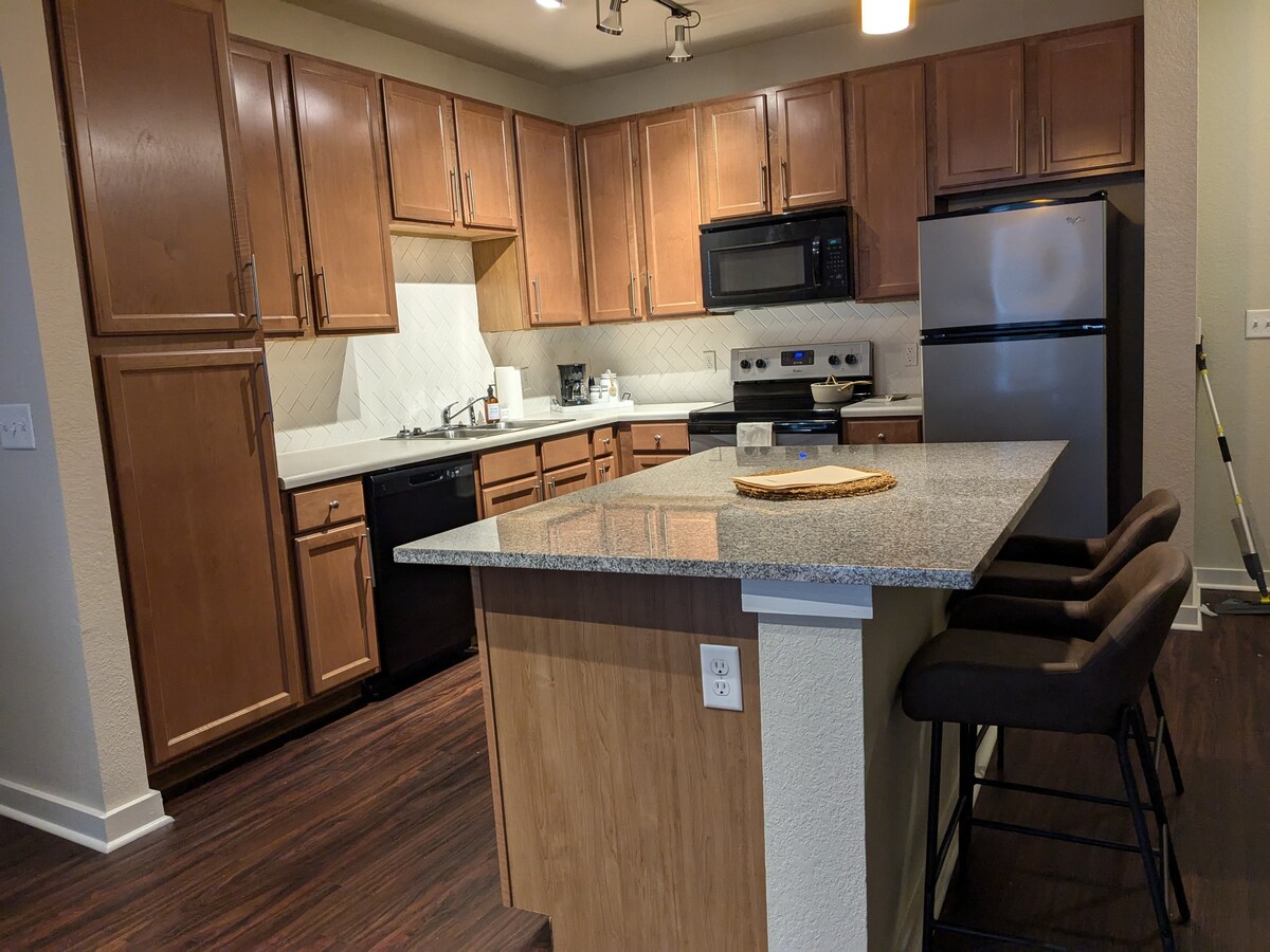 Kalimutan ang iyong mga alalahanin sa maluwag at tahimik na lugar na ito. Ang aming marangyang suite ay 828 square feet at nagtatampok ng mga hindi kinakalawang na asero na kasangkapan, isang full - size na washer at dryer, at mga bagong muwebles. Kasama sa bagong itinayong suite na ito (2024) ang lahat ng iyong pangunahing kailangan sa banyo at kusina. Kasama sa aming silid - tulugan ang isang napaka - komportableng king size na higaan na may mga nightstand sa gilid ng mesa na may mga USB port sa mga lamp.