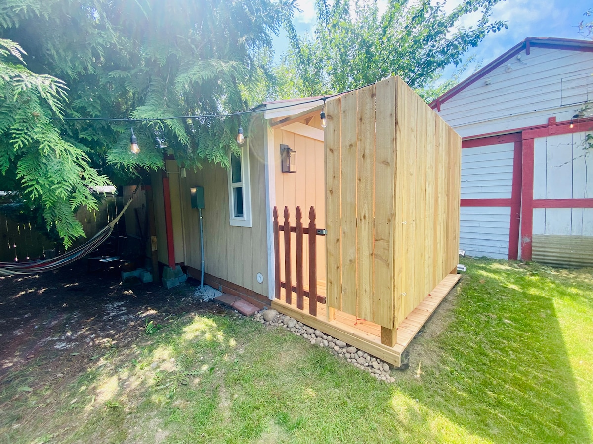 This backyard shed conversion is a perfect mix of comfy and quirky. Ms Pacman, Beanie Babies, & a lips couch all make an appearance in this "glampsite!" At just 186 square feet, this spot is all yours to enjoy away from the noise of the city in our large and lush backyard. You will have full rein of a private patio to smoke or enjoy meals on our newly built cedar deck, or enjoy a beer in the shared hammock. **COMPOSTING TOILET** in the space (cleaned weekly) & **NO ACCESS TO SHOWER** :) Thanks!