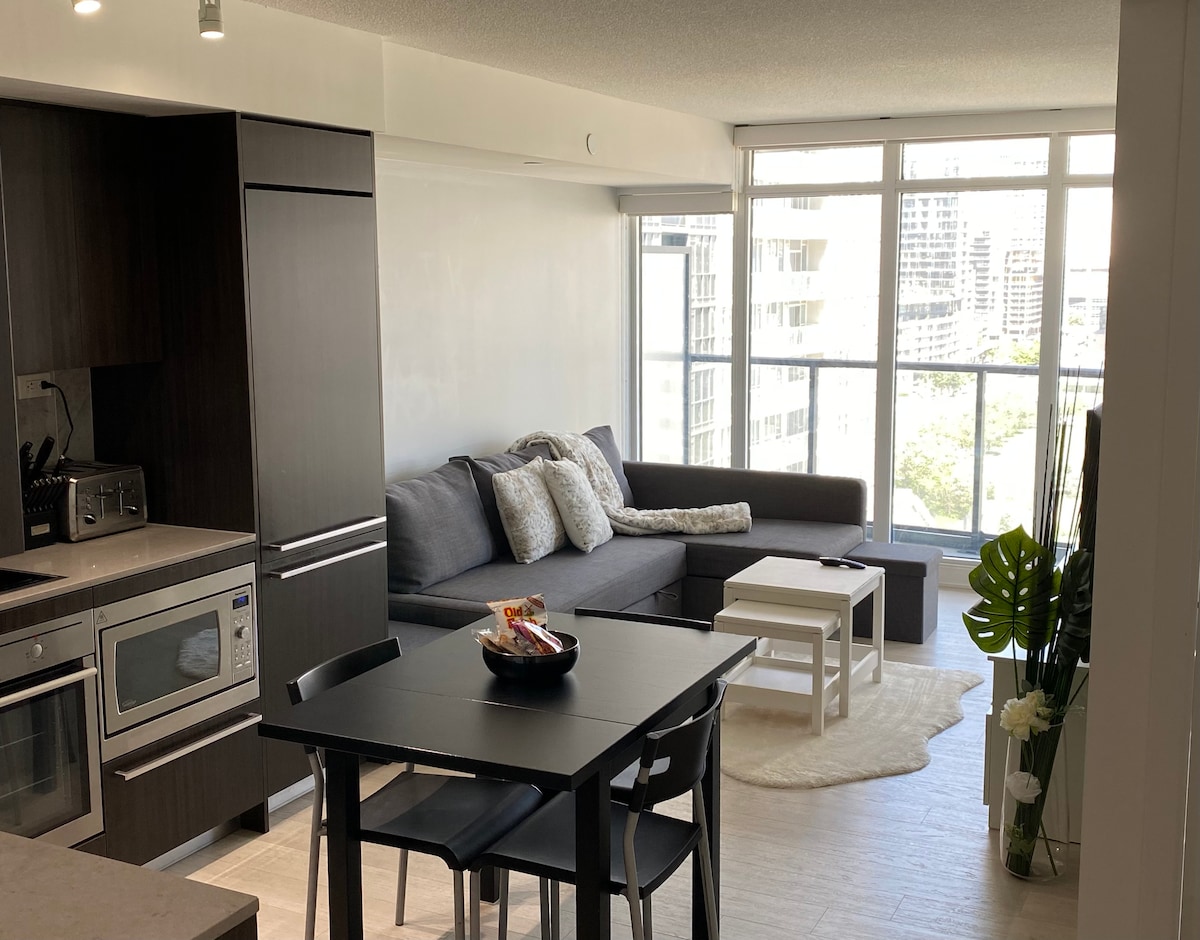 Ideal for one or two guests - solo guests, couples, friends or those in town for work. No parties or additional guests permitted. Enjoy views from the large balcony with great views of the CN Tower, Lake Ontario and Toronto skyline! Located next to Union Station, making it easy for guests to get to and from. Close to all forms of transit. Short walk to CN Tower, The Harbourfront, sports/concert venues, the Entertainment District, restaurants and shopping. Please read the rules section in full!