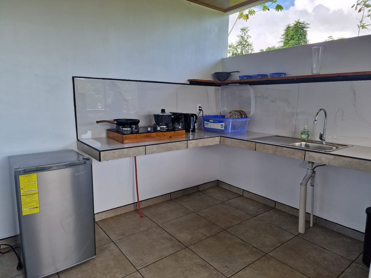 Matatagpuan ang aming mga komportableng cabin sa gitna ng maaliwalas na tanawin ng Costa Rica na napapalibutan ng mga makulay na berdeng dahon at matataas na puno. Ang mga bagong cabin ay may mga kusina sa labas at malalaking bintana na nag - iimbita sa kagandahan ng labas Ang mga bakuran ay isang liblib na paraiso ng mayamang biodiversity na may mga makukulay na halaman at namumulaklak na bulaklak at lokal na wildlife pa 15 minutong maaliwalas na lakad kami mula sa beach at mga tindahan at bar o 3 minutong biyahe sa kotse. Nagsasalita ang host ng English, French, at basic Spanish