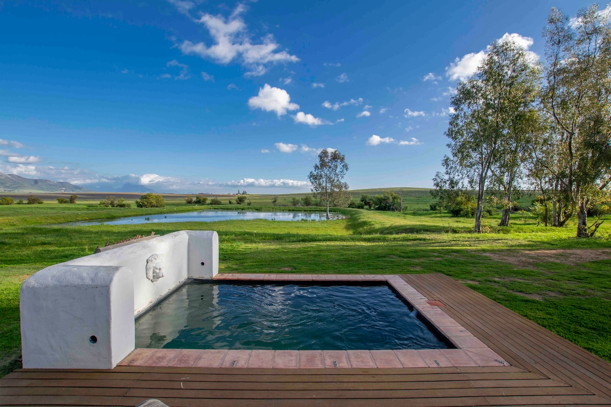 Masiyahan sa mga tanawin at tunog ng kalikasan kapag namalagi ka sa natatanging eco home na ito, na idinisenyo nang may mga biophilic na prinsipyo. Pinili namin ang mga likas na materyales sa gusali tulad ng mga pader ng abaka, 100 taong gulang na recycled na kahoy ng Oregon at eco - handmade na eco - paint para madagdagan ang aming koneksyon sa kalikasan at mas magaan ang pagtapak sa ating planeta. Nakakatulong ang double glazed glass sa pag - regulate. Tinatanaw ang aming dam sa bukid, na may mga puno na mapagpapahingahan sa ilalim at sa mga marilag na bundok ng Winterhoek bilang kaakit - akit na backdrop - ang aming cottage ay ang perpektong bakasyon sa katapusan ng linggo.