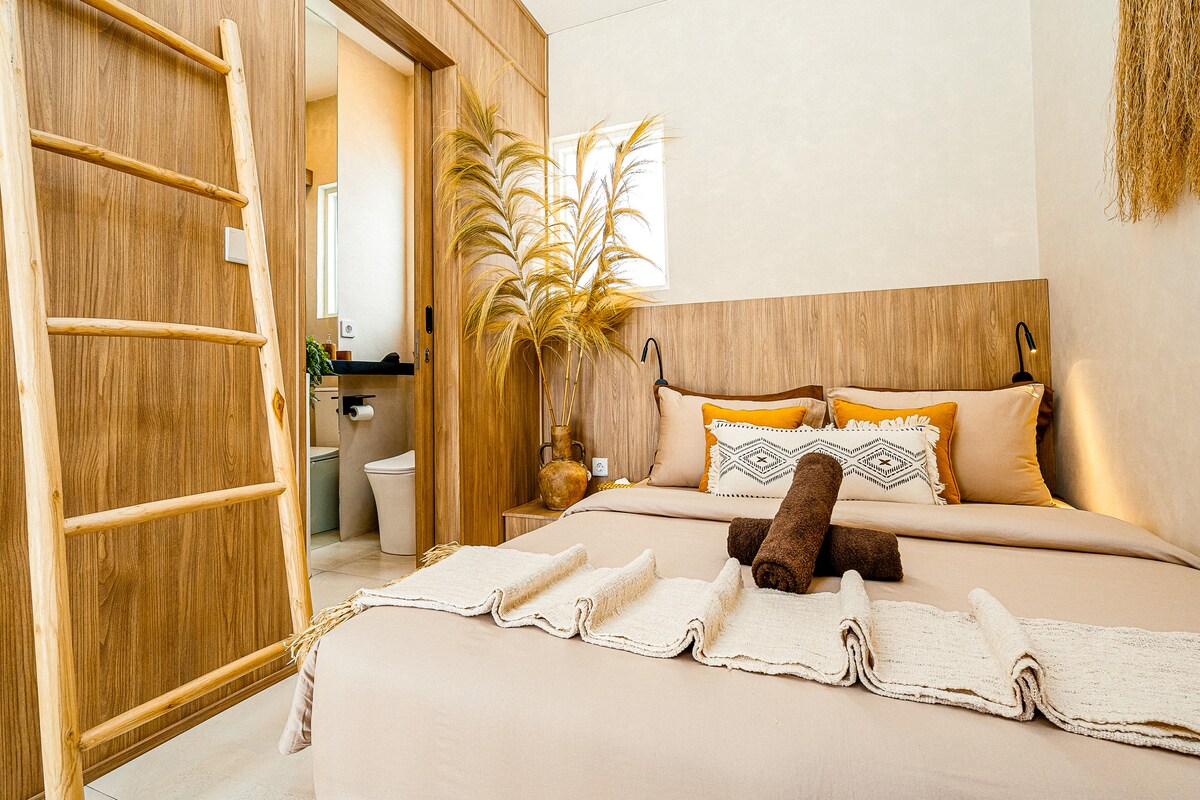 Tumakas sa iyong pribadong tropikal na santuwaryo na idinisenyo nang isinasaalang - alang ang pag - iibigan at pagrerelaks. Matatagpuan sa isang tahimik na bahagi ng Bali, pinagsasama ng naka - istilong villa na may isang silid - tulugan na ito ang mga kurba na inspirasyon ng Mediterranean na may modernong kagandahan, na perpekto para sa mga mag - asawa at honeymooner na naghahanap ng pangarap na bakasyon. Nagising ka man sa malambot na sikat ng araw sa pamamagitan ng mga manipis na kurtina, kumakain ng al fresco sa ilalim ng mga bituin, o nag - e - enjoy sa nakakarelaks na pagbabad sa iyong designer shower, pinangasiwaan ang bawat detalye para sa kaginhawaan, estilo, at koneksyon.