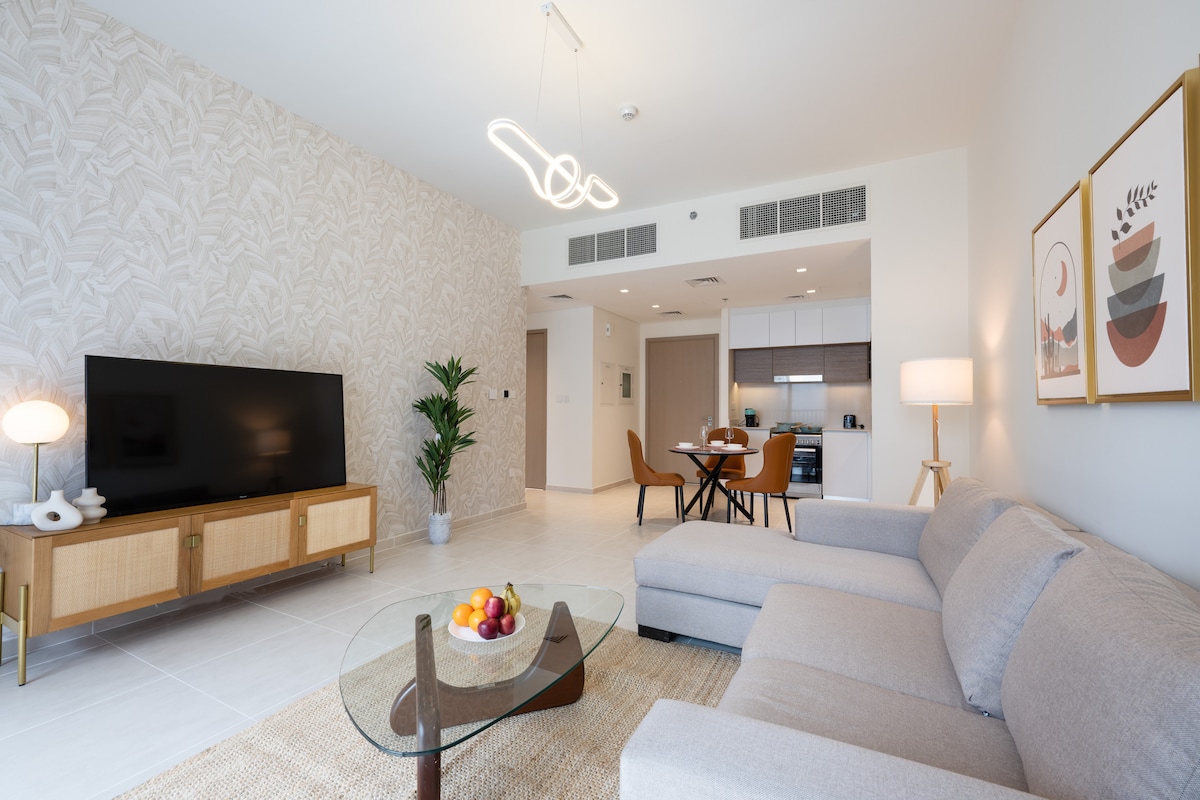 Imagine Downtown Dubai just minutes away, without the crowds, noise, or parking stress. This bright 1BR in Sobha Creek Vistas Reserve, MBR City, gives you skyline views, easy access to Downtown and Business Bay, and quiet mornings you’ll love.. Families love the free crib, high chair, pool, and playground. Guests say it’s exactly as shown—safe, spotless, close to Dubai Mall, parks, and cafes, with free parking and a gym onsite.