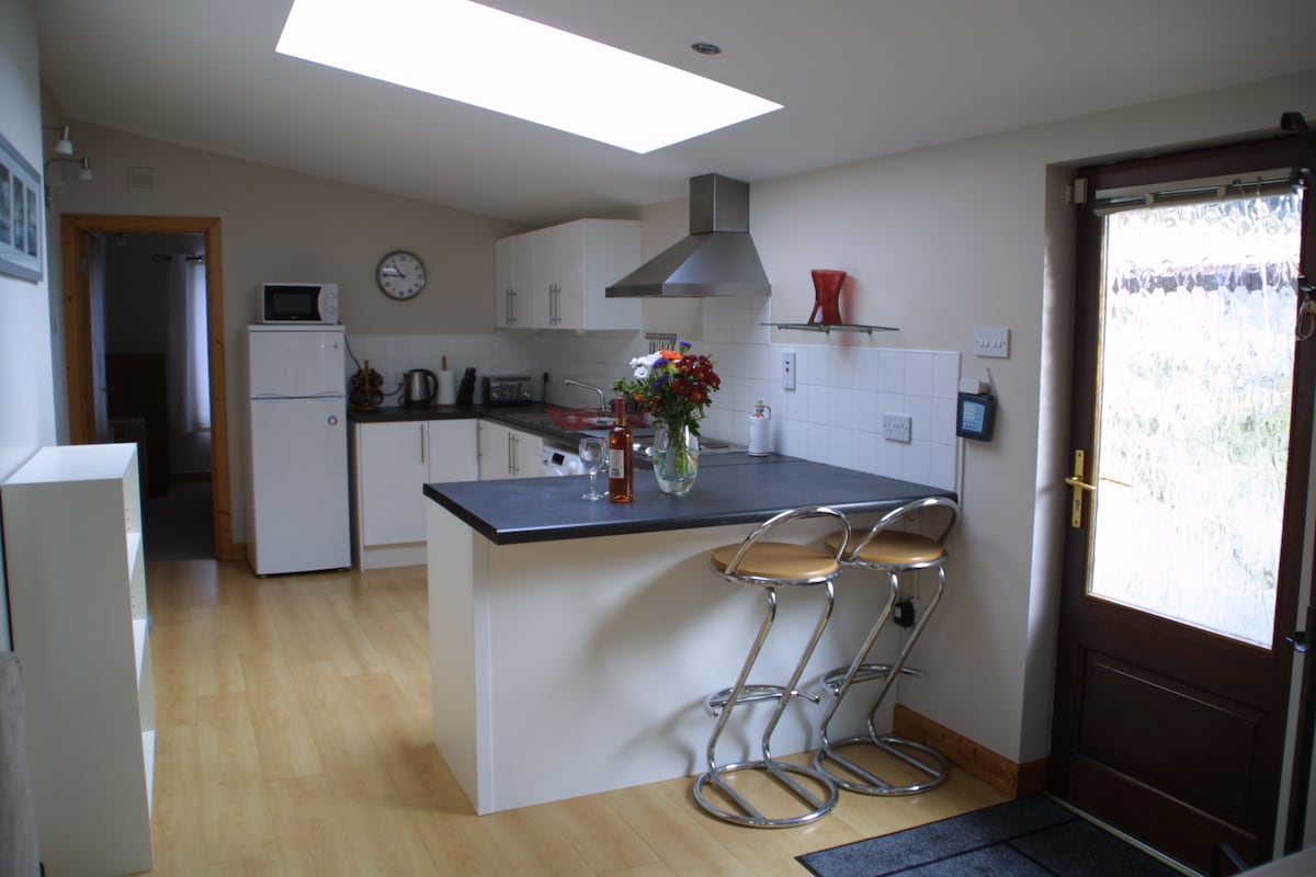 Bahagi ng tahanan ng pamilya namin sa sikat na Stoneybatter ang pribadong tuluyang ito pero may sarili itong pasukan kaya nasa tahanan ng pamilya ka pero may karagdagang kaginhawaan dahil pribado ito. May Kettle, Coffee Press, mesa, at mga upuan sa pasukan/pasilyo na ito. May triple bed sa kuwarto na perpekto para sa magkarelasyon o pamilyang may batang anak. Minsan, para sa 3 matanda. Kailangang may kasamang magulang ang mga wala pang 18 taong gulang. Mga aklat na posibleng interesanteng basahin habang nagpapahinga sa mga fat boy! May Toilet, Lababo, at De-kuryenteng Shower ang En‑Suite.