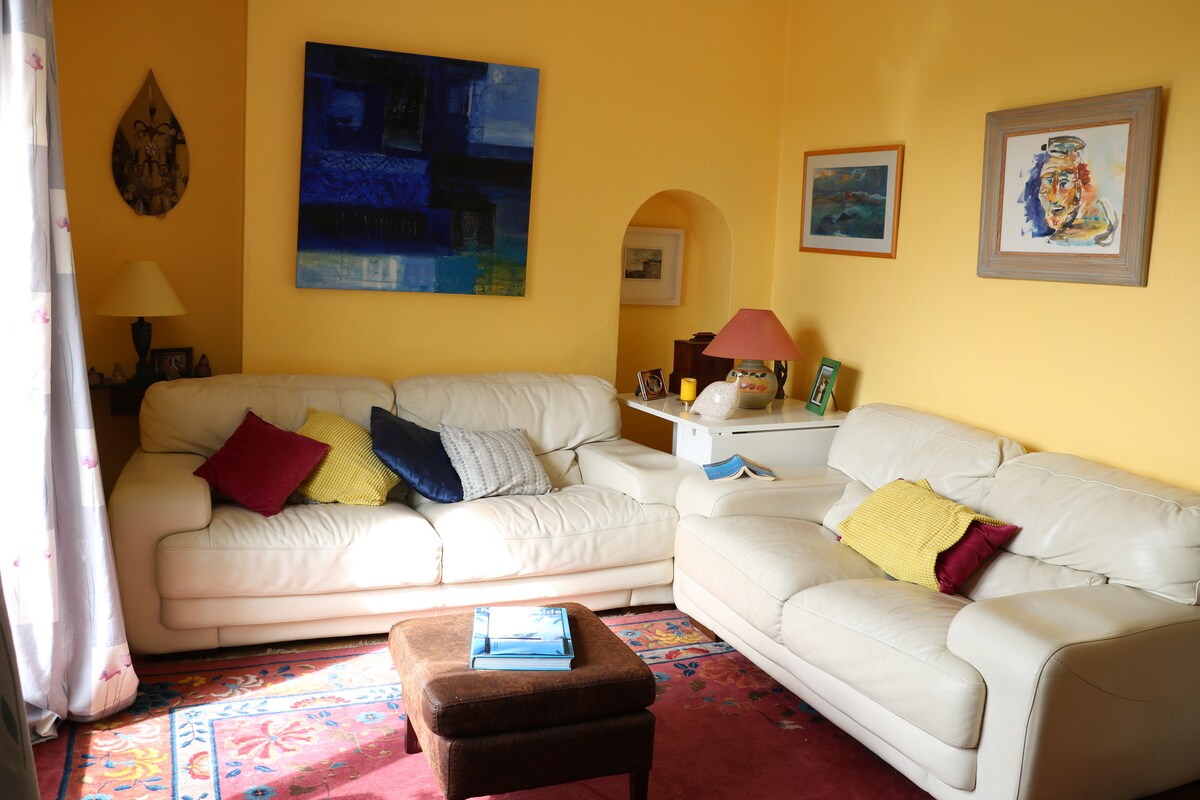 Pribadong kuwarto ng bisita na may sariling banyo at pasukan. Nakakabit sa patuluyan namin ang en-suite na nag-aalok ng self-contained na tuluyan para sa iyong kaginhawa at privacy habang nakatira kami sa pangunahing bahay. Ang aming tahanan ay 4 km lamang timog-silangan ng sentro ng lungsod, madaling maabot sa loob ng 13 minuto sa pamamagitan ng DART, 6 na minutong lakad sa Aviva Stadium, at 10 minuto sa RDS. Isang maliit na baryo ang Sandymount na may mga restawran, kapihan, bar, botika, at supermarket. 6 na minuto lang ang layo ng kalapit na Sandymount Strand kung lalakarin.