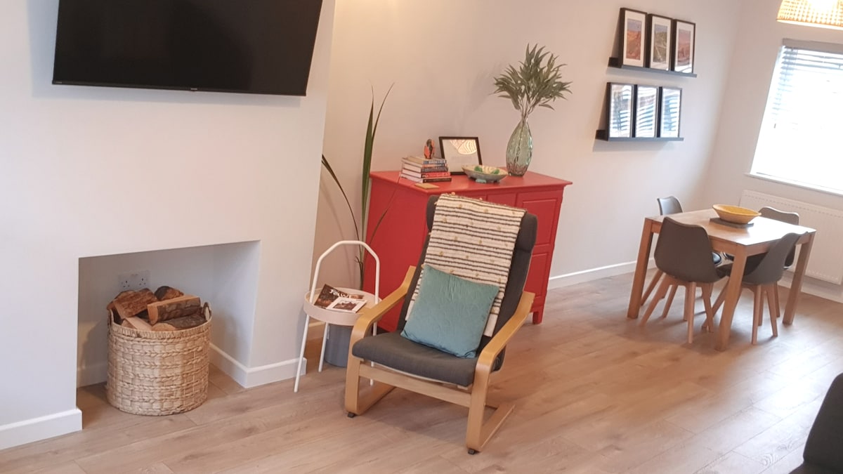 A bright and airy ground floor annexe, used solely for guests. With its own entrance, a comfortable double bed, fully equipped kitchen and outdoor patio area, you are guaranteed a relaxing and private stay. Nestled away in the village of Tupton on the edge of the Peak District, we hope that you can find a place to relax, eat and explore. If you're with us for work, moving house or to see family, then we have everything you need from pots and pans to a washing machine as well as a space to park.