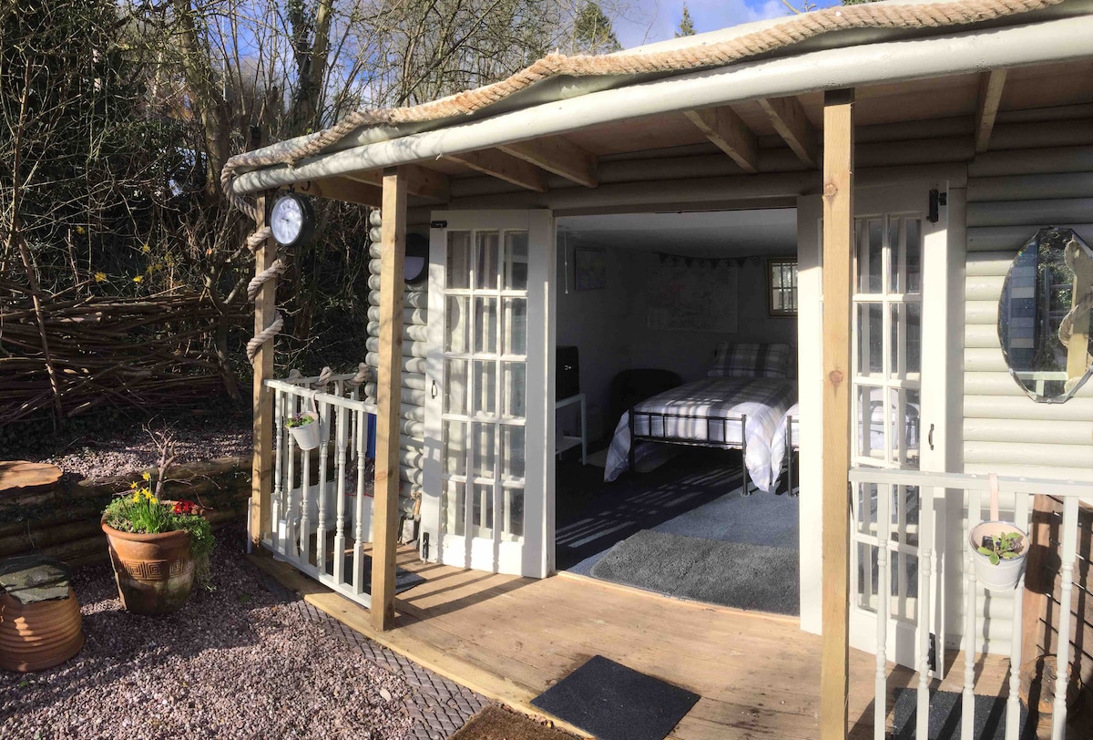 A private, simply furnished cabin at the bottom of our garden within the World Heritage Site. The cabin has two single beds. There is a shower room and separate toilet ten steps from the cabin . We are 100 metres from a great pub which serves real ales and excellent food. The space is very private with access to a small garden. We are a 5 minute walk from Thomas Telfords famous aqueduct. Offas Dyke path is at the bottom of our drive. We are close to Trevor Barns and Tyn Dwr Hall wedding venues